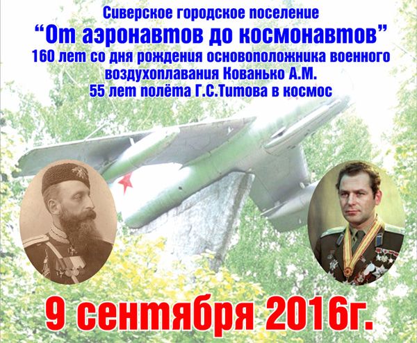 посвящённые 160-летию со дня рождения основоположника военного воздухоплавания России А.М. Кованько и 55-й годовщине полёта Г.С. Титова в космос.