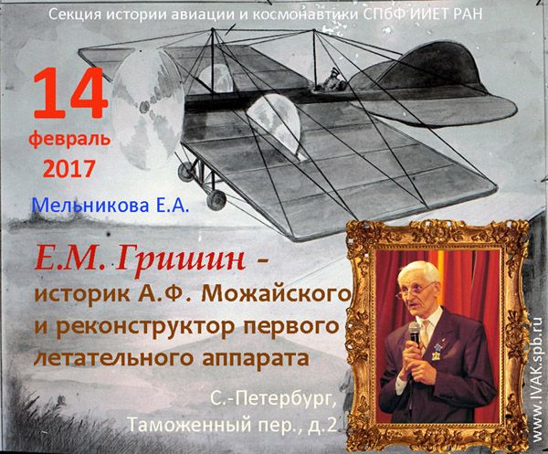 «Е.М. Гришин – историк А.Ф. Можайского и реконструктор первого летательного аппарата»