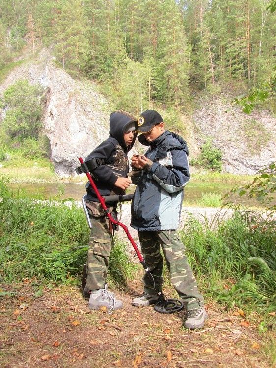 Детям Серега приготовил сюрприз. Они нашли несколько старинных монет недалеко от стоянки с помощью прихваченного с собой миноискателя.