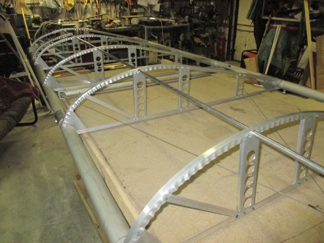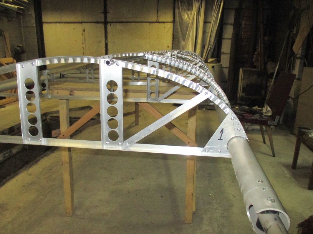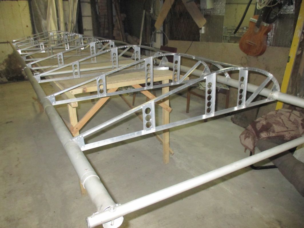 Получается дёшево и сердито. Дешевле чем новую обшивку покупать. Между нервюрами в лобику будут стоять по 2 дуги из уголка выгнутых по  профилю, дабы уменьшить провис обшивки, и ткань в два слоя от переднего лонжерона до верхней трубочки. Кому интересно обращайтесь в личку.