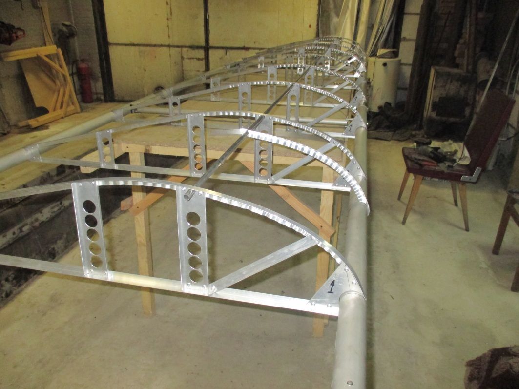Да сезон закончился, перебрались на зимние квартиры. А чтобы скоротать долгие зимние вечера, делаем ещё одно крылышко. Каркас крыла от Икаруса, нервюры уголок АД31Т1 15Х15Х1, обшивка будет синтетика термоусадка. Дюрали в лобике не будет. Профиль Икаруса, толстый.