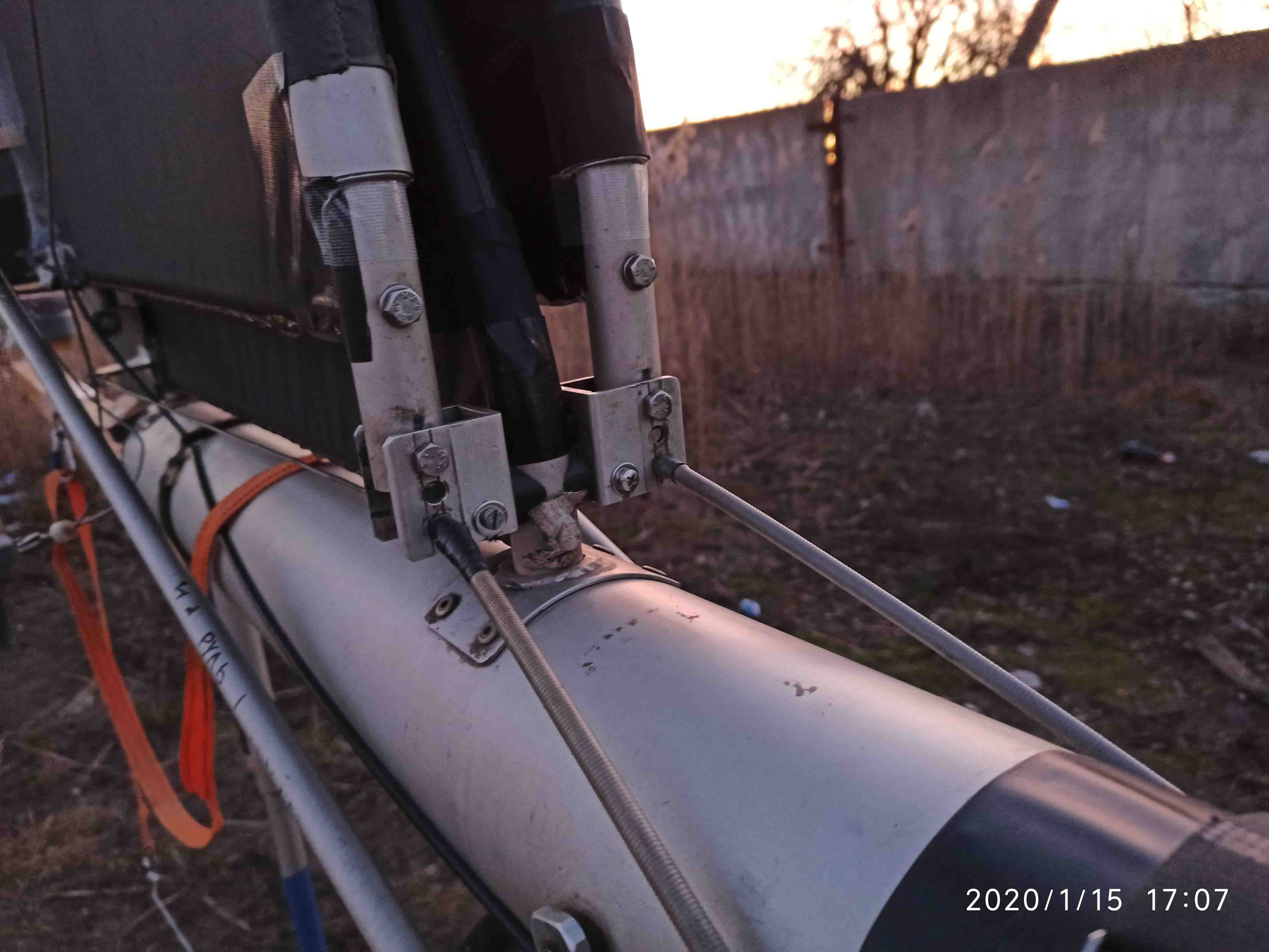 Концы трубок сплюснуты образуя хвостики и обработаны наждаком чтоб не было острых углов. Концы обмотаны тканевой изолентой выступая за край  3..4мм. Сверху идет термоусадка тоже выступая за край уже изоленты 2..3 мм.. Трубки держит сама обшивка крыла прижимая кончики к трубам (лонжеронам) крыла.
