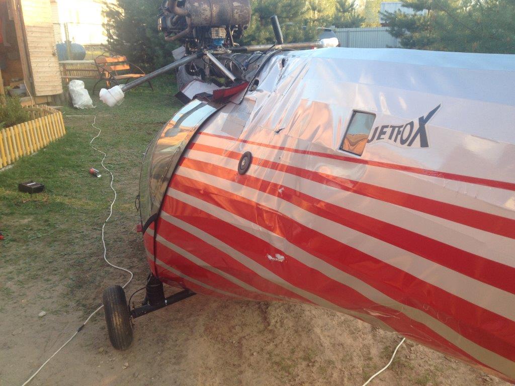 В результате чего дальнейшая сборка самолета была отложена на неопределенно время и началось изучение вопросов ремонта фермы и обшивки, благо с винтом быстро помогли ребята из Лугапропа (мира им и всему Донбассу), а трубу, учитывая, что она не несущая, а служит только опорой для складывания крыльев (на Виталиковом Джетфоксе ее вообще нет и ничего), я выправил собственными силами...