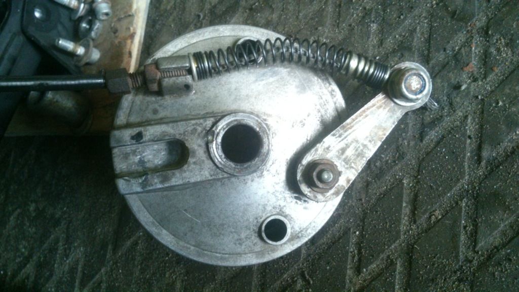 Внутри должна стоять спиральная. Прямо на оси рычага. Плюс на самих колодках пара. ...что, и всё равно не хватает? 😱поставил возвратную пружину на рычаг для отжима колодок.
