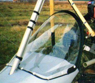 Для крепления стекла я вытачивал из фторопласта шайбу 20мм  с короткой ,длина 3мм диаметр 6мм трубочкой (заодно) и отверстием в ней под 4мм болт. Стекло- обычный 2мм плексиглас ( из магазина, кажется 1300р лист) В стекле делал отверстие 6мм и в него вставлял трубочку с шайбой. Стекло крепилось к обтекателю шайбами на 4мм болтах. По козырьку стекла делал окантовку из полосы Д16 шириной 30мм на 3мм болтах впотай. За 6 лет полетов на химию, сменил всего 2 стекла ( хватило одного листа плекса ). Не знаю как кому, но мне 2мм толщины стекла вполне хватало, хотя я несколько раз ловил в стекло жаворонков. Поликарбонат -материал прочный на удар, но плохо держит местные напряжения. Плекс обязательно нужно закрывать, когда работаешь с мотором-капли ГСМ быстро делают его мутным , в сумерки летать тяжело.
