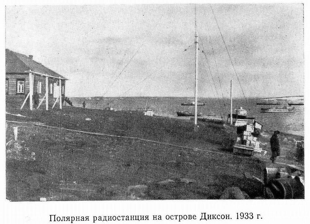 ..."14 августа 1934 года советский лесовоз, шумя приветственными флагами, вошёл в широкую бухту Диксон. Началась разгрузка. Прибывшие на лесовозе строители радиоцентра превратились в грузчиков.