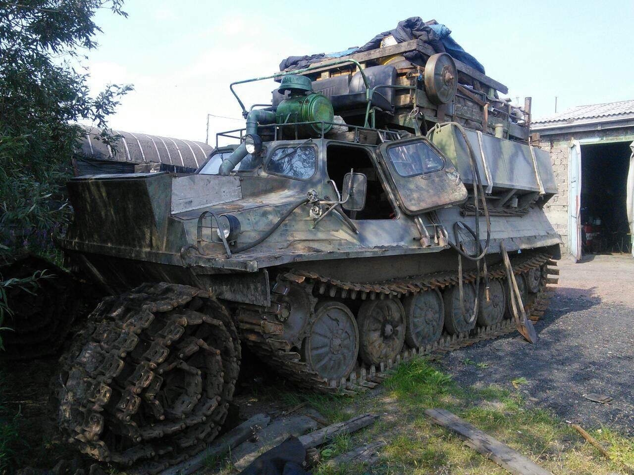 Вот такой трудяга вездеход ГТТ стоит на нашей базе. Полностью на ходу, с уже переделанным умельцами двигателем ЯМЗ и гусянками от БМП.
