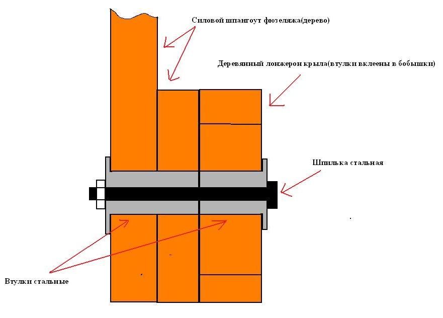 Здесь,правда,нарисовано лишь соединение лонжеронов консолей между собою - а закрепление их на фюзеляже не показано.