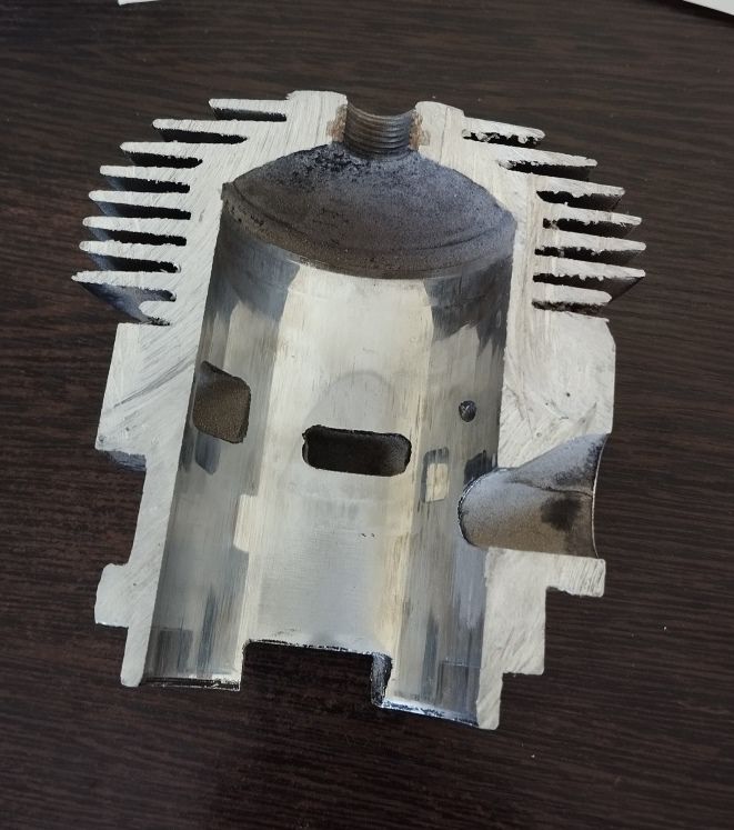 Видно отвратительную форму камеры сгорания и ненужное отверстие для отметания стружки от карбюратора.