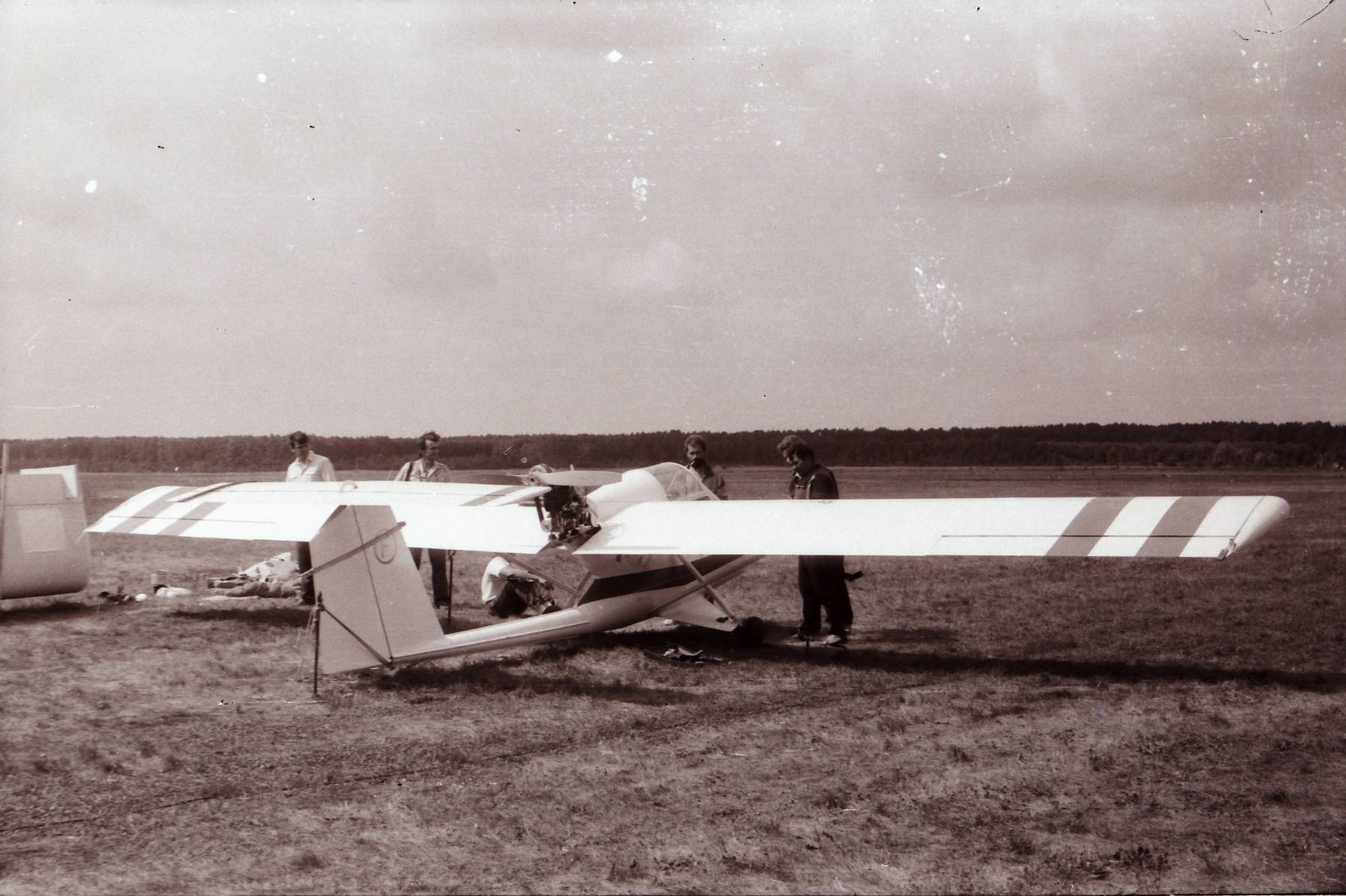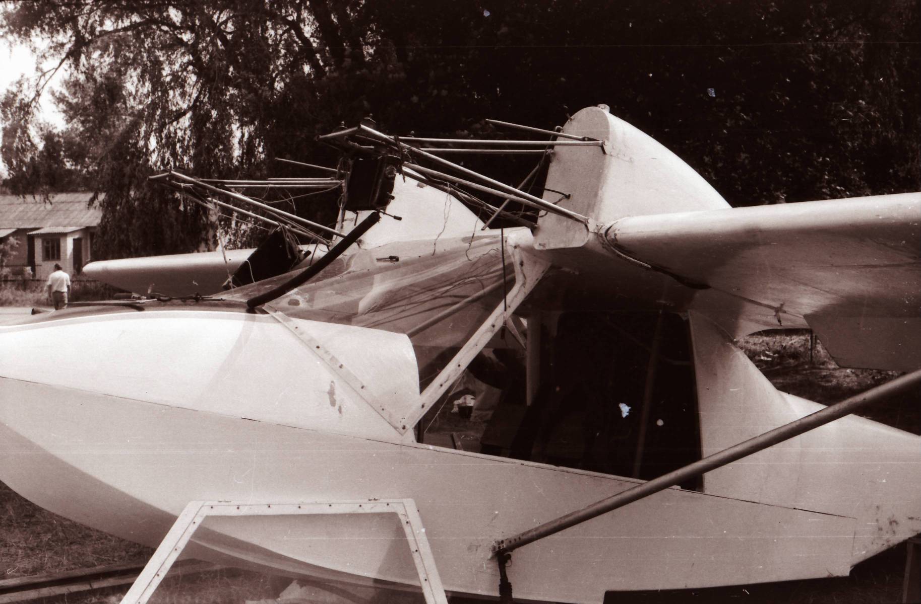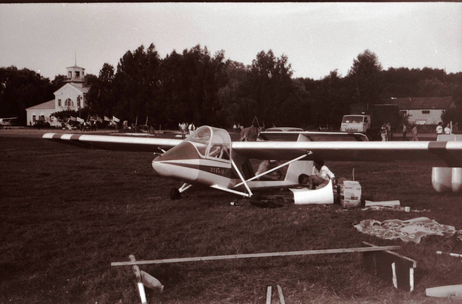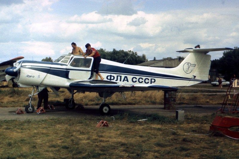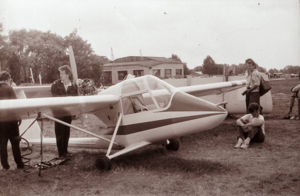 "Тяжелая" авиация слёта - самолет симбиоз планеров Як-18Т и Л-29 под обозначением "Сельскохозяйственный самолет АЭРО-15 авиатехнического кооператива "АЭРО" из Харькова. Конструктор В.П. Моввико". Самолет был явно перетяжелён большим количеством стеклопластиковых переходных элементов, на слёте рулил, но в воздухе я его не видел. Фото не моё, взято из другой ветки, там ошибочно написан 1989 год.