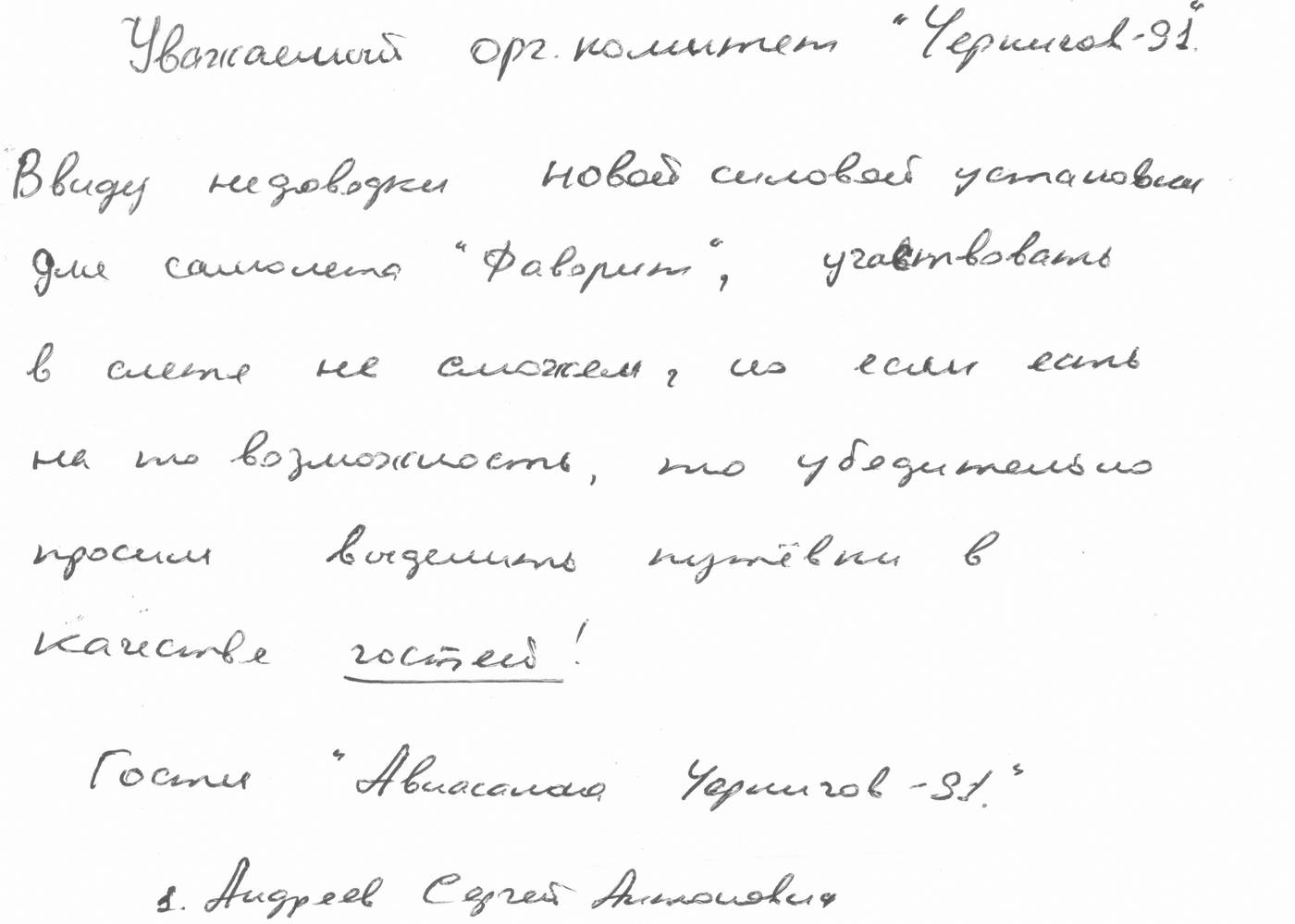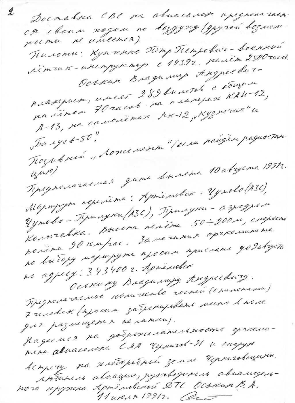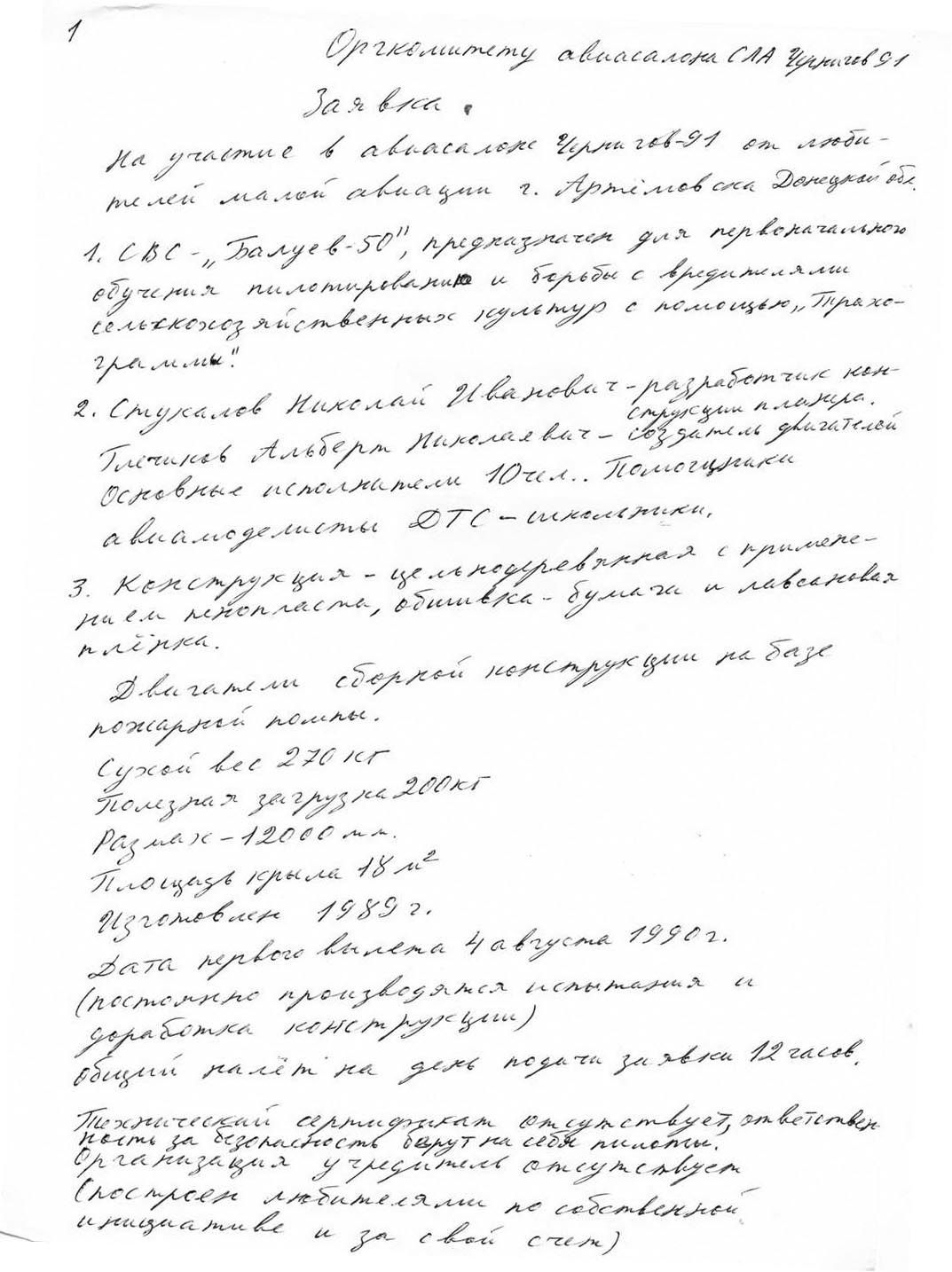 Команда из г. Артемовска Донецкой области под руководством Оськина Владимира Андреевича планировала перелет в Чернигов самолета "Балуев-50".