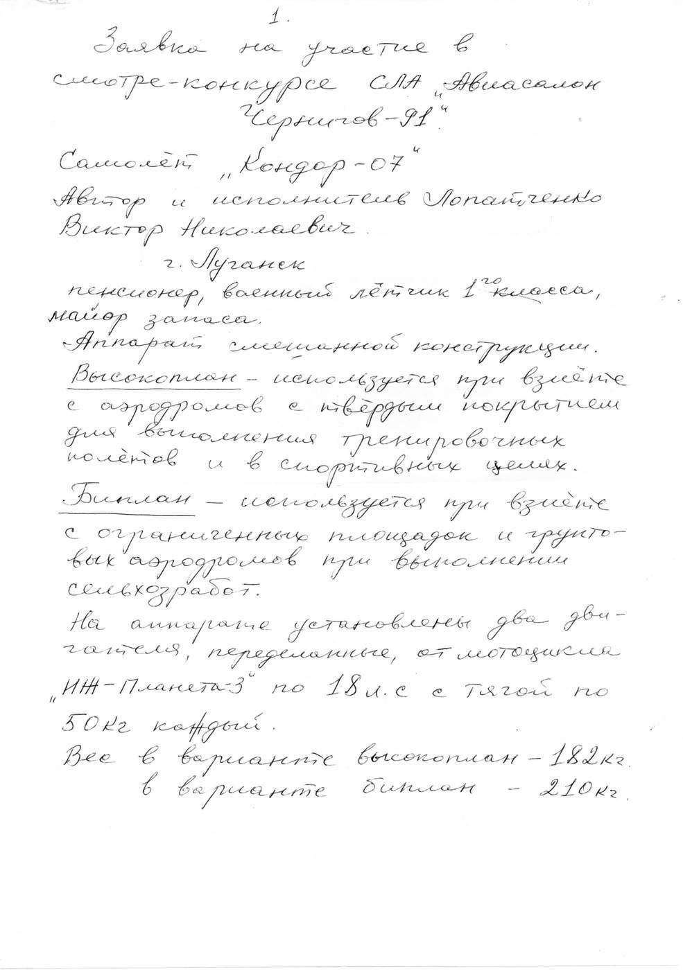 Лопатченко Виктор Николаевич из Луганска с самолетом "Кондор-07". Изначально ставил "Вихрь-30", потом два "Иж-П-3".