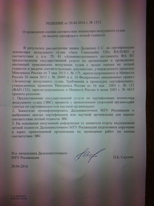 Пока всё идет в рамках авиационного законодательства, предоставлять документы и оглашать СЦ не имеет смысла, поймите меня правильно. По результатам сертификации, если она когда-нибудь закончиться, постараюсь написать отчёт.