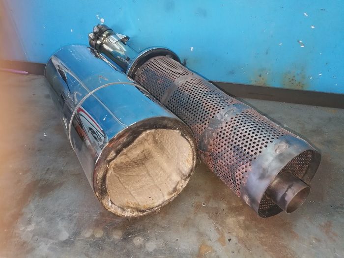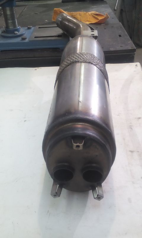 Мы "забили" на самоделки. Поначалу был см. фото. Порвало как тузик грелку часов через 6. Потом подвернулся тюнинговый глушак с классики. Полетали с ним без проблем. И затем купили на мотофоруме б/у "родной-фашицкий".