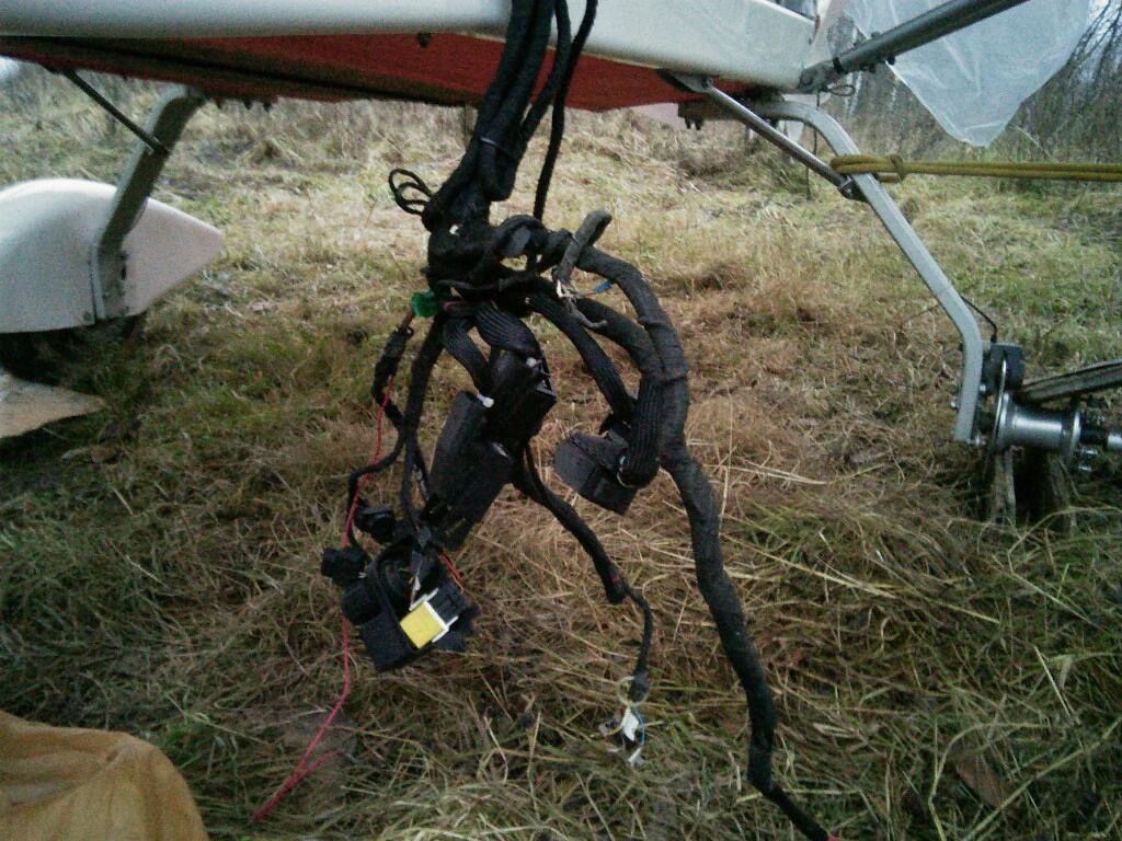 Но я за три года полётов в каких токо буреломах не побывал и даже не знал как моя проводка выглядит. ХЗ в ней ли ещё дело. Сегодня удалось вытащить весь хвост на свет Божий. Теперь и работать с ней удобно и обратно уложу как нравится.
