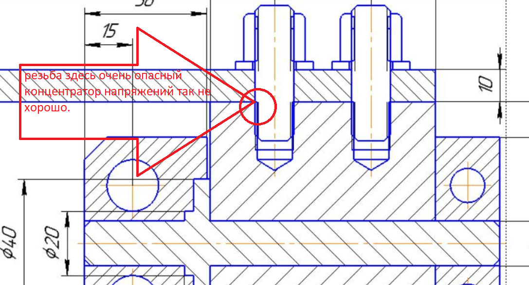Кто знает на сколько нужно заглубляться ? И есть ли там достаточно места для этого ? Я бы такое решение со шпильками, для себя вообще не рассматривал . Но хозяин барин.так заглубитесь сначала цилиндрическим участком,потом резьба.