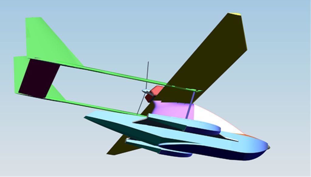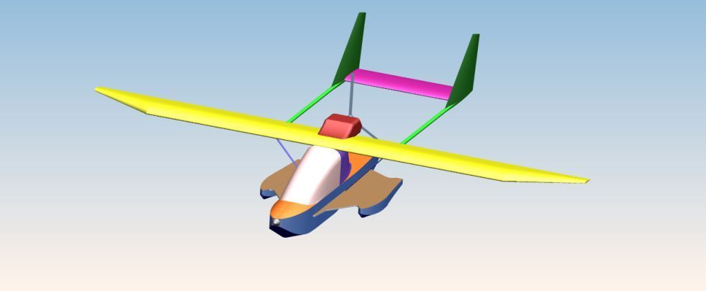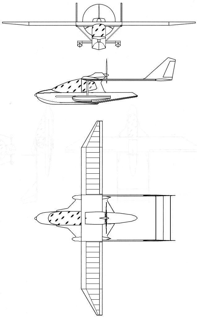 Еще кой - какие соображения: двухбалочная схема хороша для двухмоторной лодки, здесь, на мой взгляд, она неоправдана: избыточный вес конструкции оперения и балок придется компенсировать запасом плавучести, как это и нарисовано. Но это опять-таки ведет к возрастанию веса. Проще применить однобалочную схему с толкающим винтом, как у Colyair. Там балка сама себе плавучесть обеспечивает.