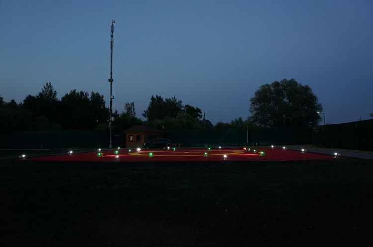 Сегодня включили переделанное ССО на Heliport Moscow. Они забетонировали всю свою площадку и заказали переделку ССО для бетона. Будут установлены ещё прожектора подсветки зоны TLOF и восстановлен ветроуказатель, снятый с грунта.
