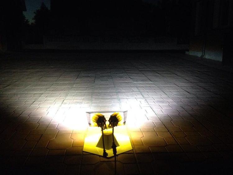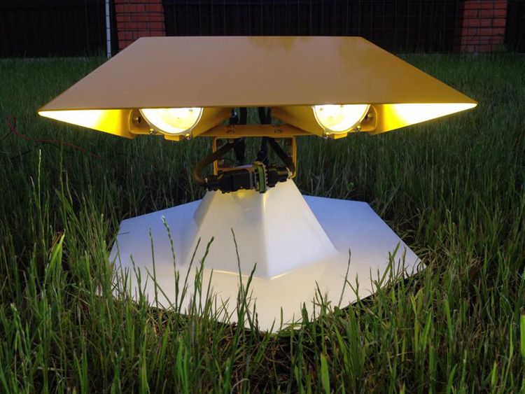 Получено равномерное освещение площадки без сильных пересветов в районе прожектора и паразитной подсветки окружающих строений. Пилотов не будет слепить совсем.