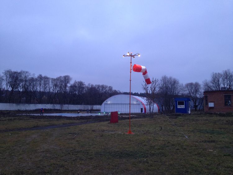 Вчера начали монтаж. Практически всё оборудование в основном поставлено заказчику. 2 аэродромных ветроуказателя с подсветкой будут поставлены в ближайшее время взамен существующих.