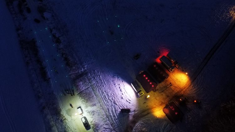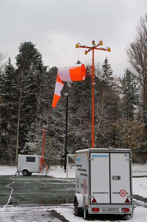 Установка огней на снег/лед/промерзший грунт показала отсутствие проблем. Расстановка тестово производилась без применения предусмотренных разметочных приспособлений. Уплотнение снежного покрова производилось Камазом из состава ЦУКС. Время подготовки площадки в поле менее 15 минут.