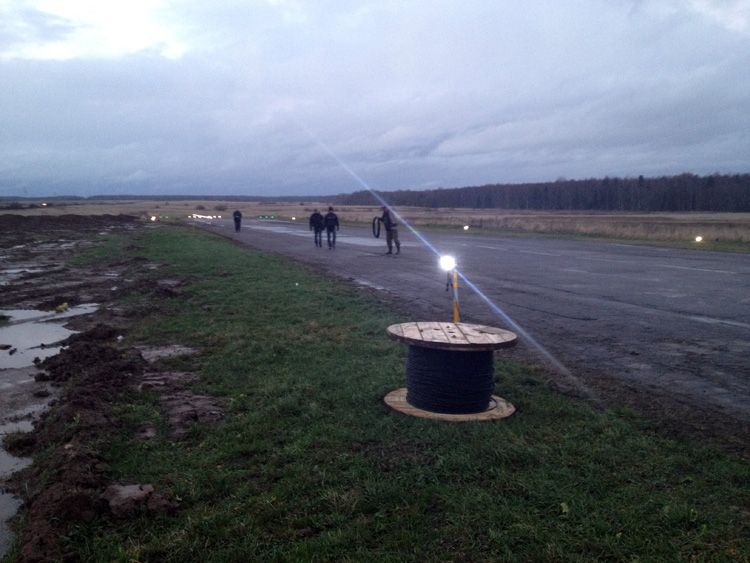 После обеда разметили полосу и начали раскатывать кабель, подключая огни. В последний раз Олег включил огни, которые он изготовил самостоятельно, для сравнения старого и нового света. Я сам в первый раз увидел синие огни перрона на улице, а не в помещении. Перед этим позвонил Тимур с Орловки, описывая свои ощущения от только что установленных перронных огней на своём аэродроме. Выглядит потрясающе 😀 Полосу с рулежками и перронами с воздуха теперь невозможно перепутать с чем либо ещё.