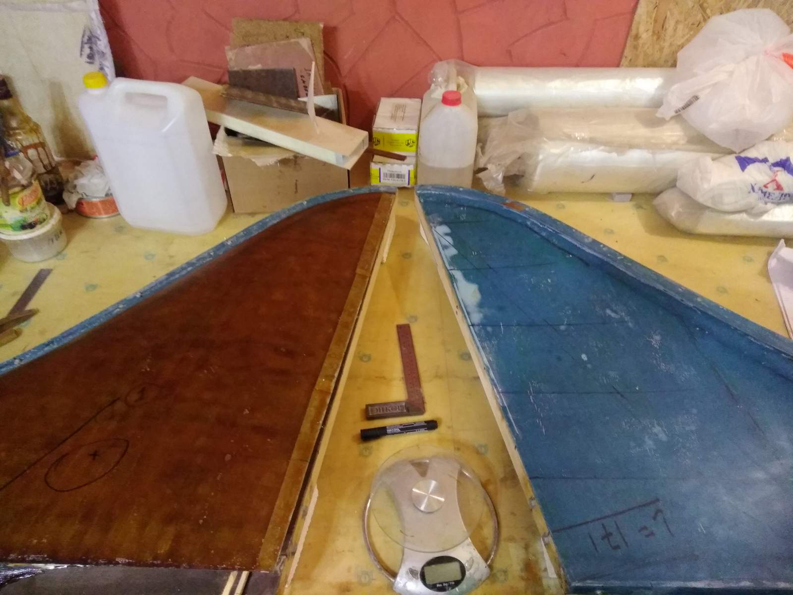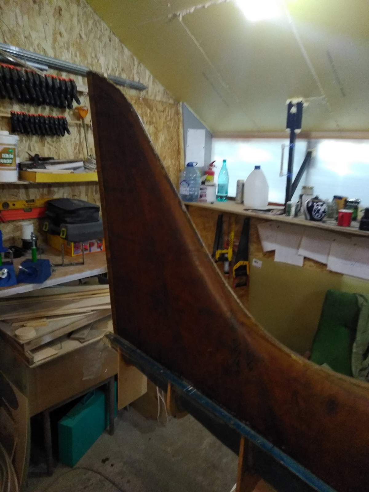 Киль на этапе сборки. на заднем плане видно ГО - полностью готово к установке, прошпаклевано и ошкурено, только без краски.