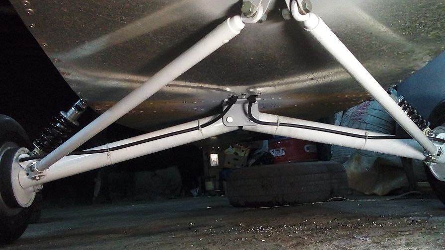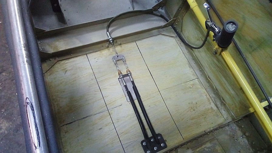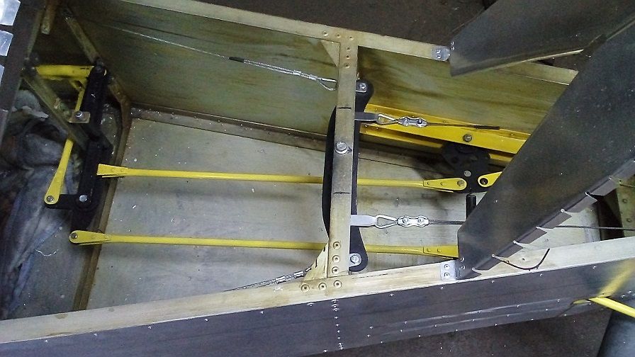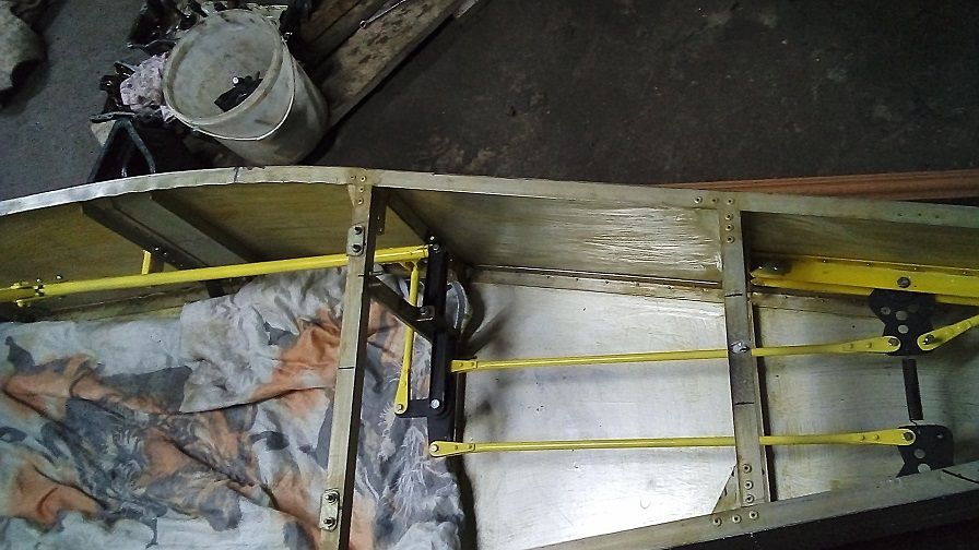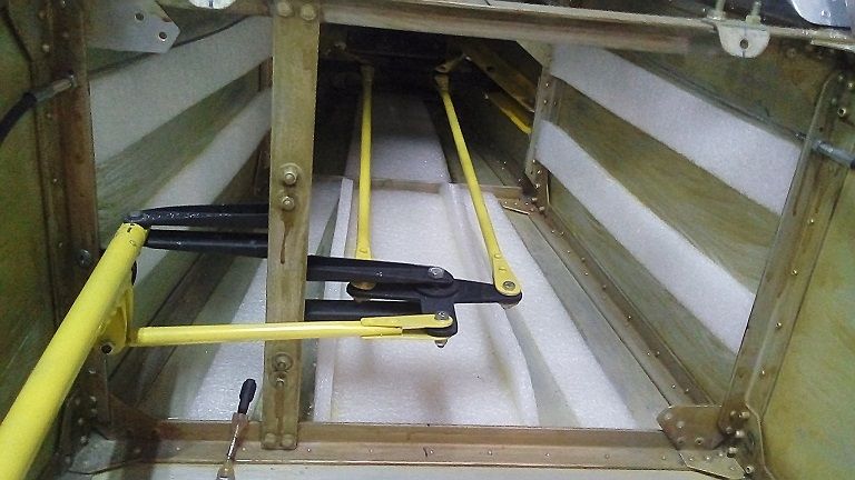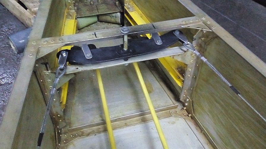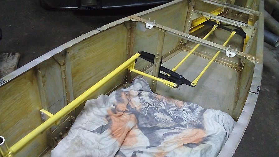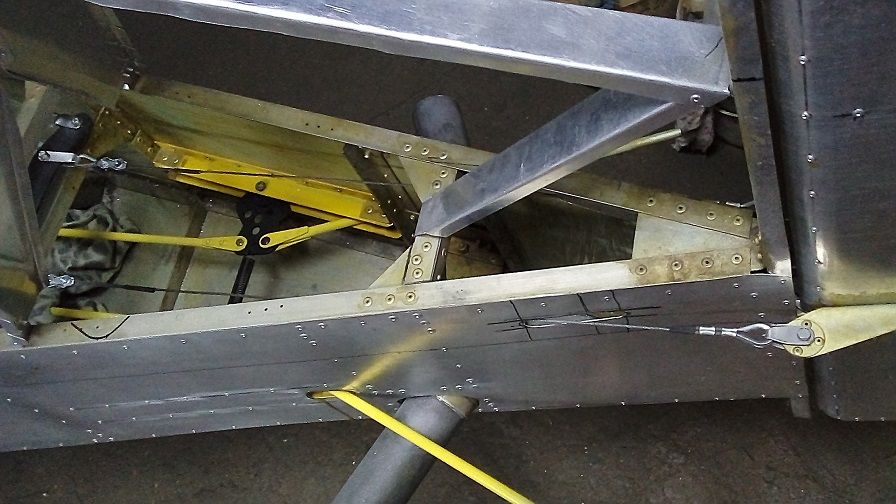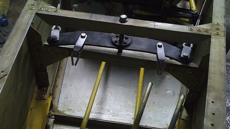 Испытания тяг молотком дали повод оставить их так , как сделал изначально. Зажимал тягу в тисках и бил молотком по ушкам в продольном направлении . Хоть как -то ослабить клепаное соединение удалось после изрядного смятия самих пластин , но даже в этом случае люфт был тугой и , т.е. пластинки не разболтались , а туго смещались под ударами молотка. Надо аккуратно разобрать соединение и посмотреть что произошло - разбились отверстия или заклепка уковалась , или и то и другое в сумме. В общем загрунтовал , покрасил и установил как есть. В дальнейшем , если будет резон , то некоторые детали все равно стоит изменить .