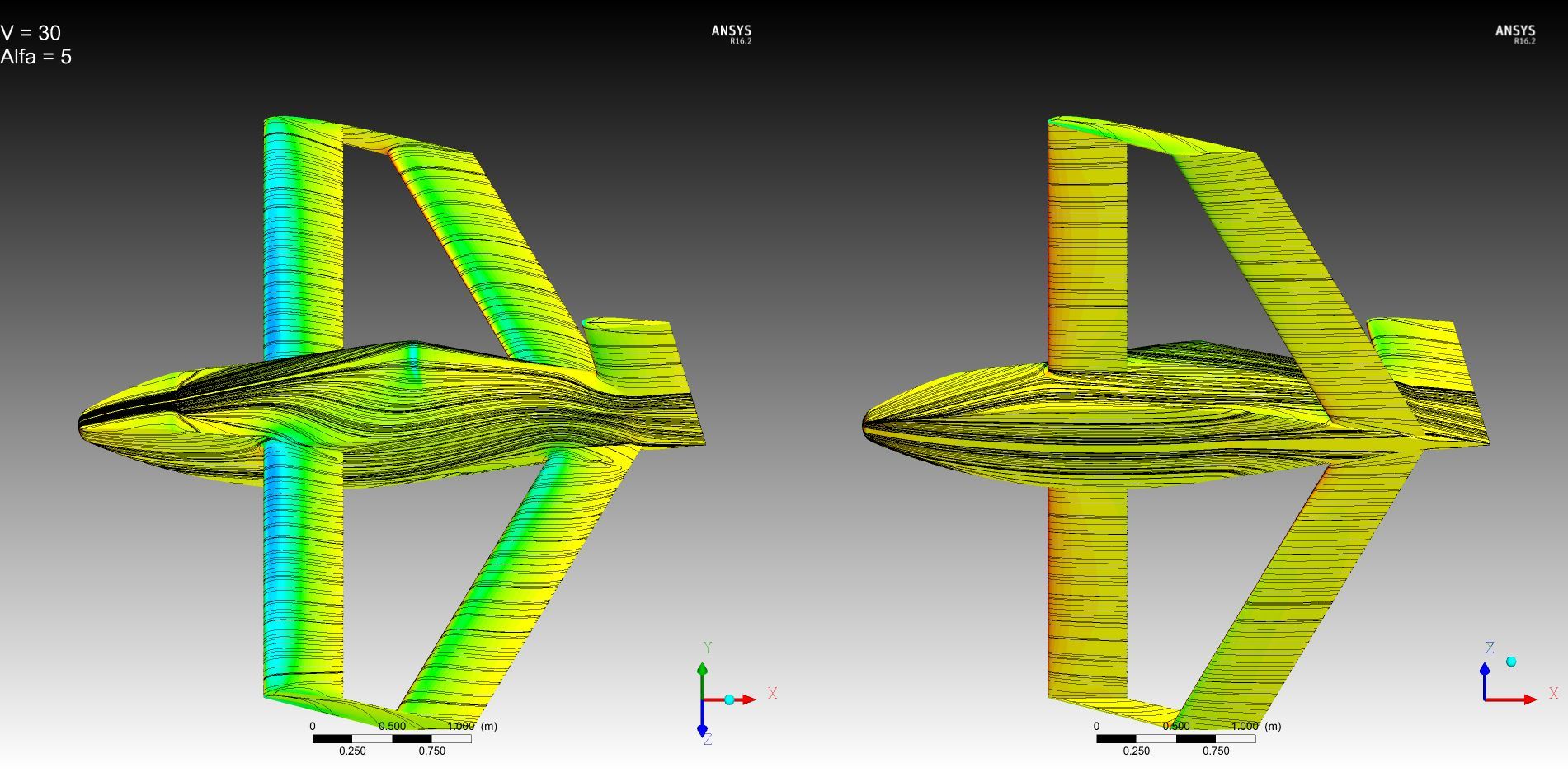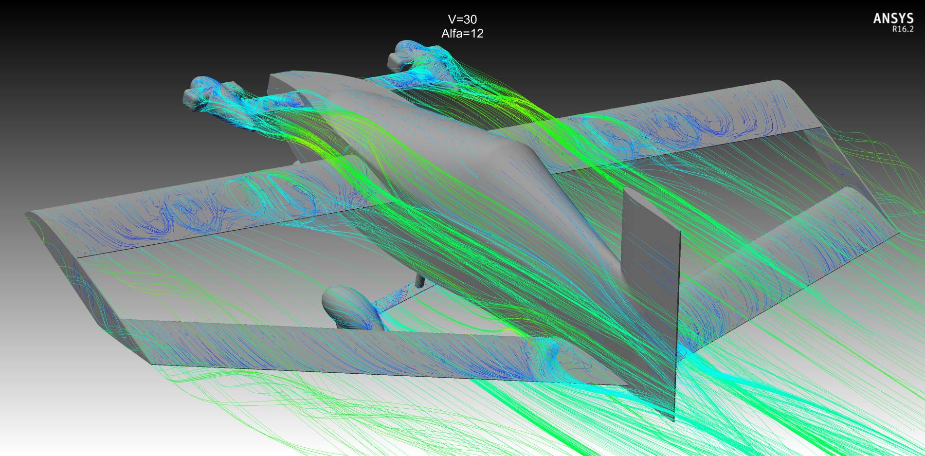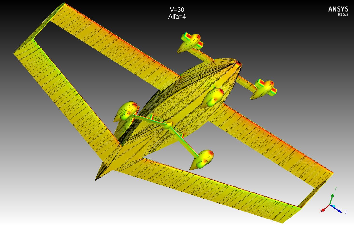 to flat: Кроме посадочных углов всегда нужно иметь запас на вертикальный порыв, т.е. речь идет о том, что выход на критические углы может случиться, даже если вы это в проекте не закладываете при рассмотрении посадочных углов. Поэтому для тандемов чаще делают заднее крыло более несущим, т.е "уточный" принцип балансировки. При срыве опускание носа может оказаться интенсивным и, так называемая, "прокачка" приведет к тому, что более несущее крыло окажется с меньшей подъемной силой. Как вариант, могу предложить добавить на переднее крыло незначительную крутку. Кроме разных углов установки крыльев желательно применение разных профилей и  средств затягивания срыва на заднем крыле. Переднее крыло в корневой части интенсивно обдувается струями винтов, это хорошие турбулизаторы и хорошо затягивают срыв  в корневой части, а к заднему крылу этот поток придет заторможенный и может привести к ухудшению  картины срыва на заднем крыле. Картинки Fa-Fa говорят о том же. Вырезы в заднем крыле в районе фюзеляжа заведомо снижают общую подъемную силу заднего крыла и могут спровоцировать развитие раннего срыва с последующим развитием на остальные части консолей. Это тоже самое, что лишиться оперения. По поводу поперечной устойчивости - хоть какое нибудь из крыльев имеет поперечное V? Хорды маленькие, размах маленький, площади элеронов хватит парировать кренящие моменты, особенно на посадке?