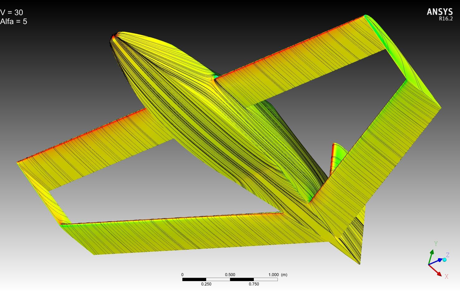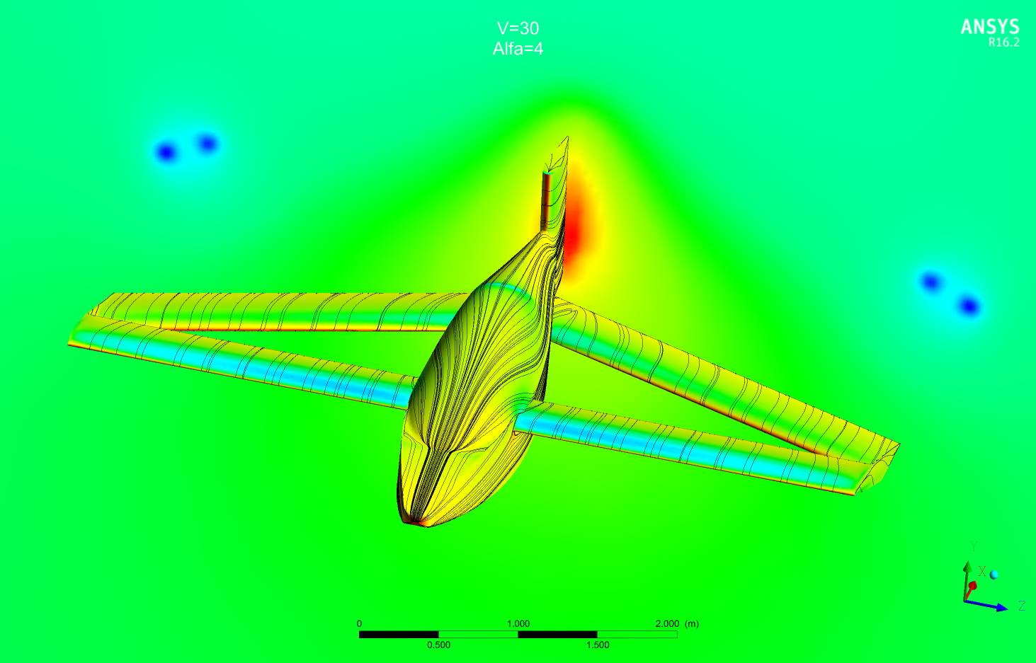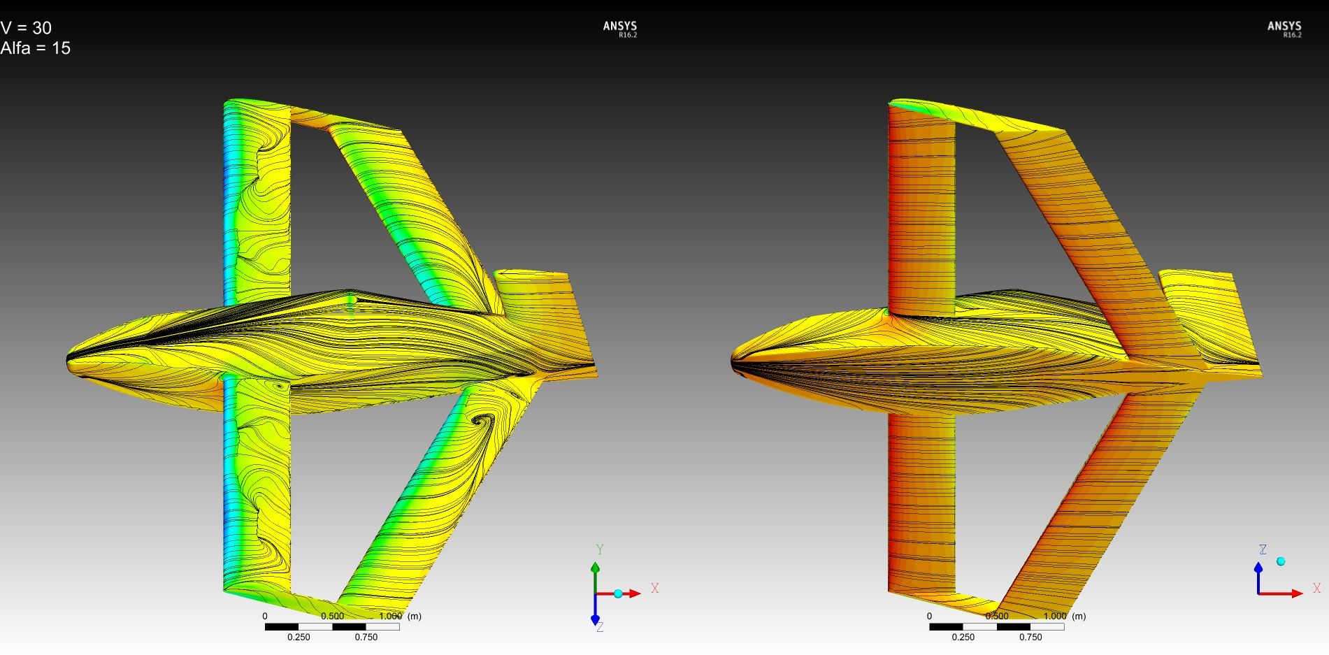 to flat: Кроме посадочных углов всегда нужно иметь запас на вертикальный порыв, т.е. речь идет о том, что выход на критические углы может случиться, даже если вы это в проекте не закладываете при рассмотрении посадочных углов. Поэтому для тандемов чаще делают заднее крыло более несущим, т.е "уточный" принцип балансировки. При срыве опускание носа может оказаться интенсивным и, так называемая, "прокачка" приведет к тому, что более несущее крыло окажется с меньшей подъемной силой. Как вариант, могу предложить добавить на переднее крыло незначительную крутку. Кроме разных углов установки крыльев желательно применение разных профилей и  средств затягивания срыва на заднем крыле. Переднее крыло в корневой части интенсивно обдувается струями винтов, это хорошие турбулизаторы и хорошо затягивают срыв  в корневой части, а к заднему крылу этот поток придет заторможенный и может привести к ухудшению  картины срыва на заднем крыле. Картинки Fa-Fa говорят о том же. Вырезы в заднем крыле в районе фюзеляжа заведомо снижают общую подъемную силу заднего крыла и могут спровоцировать развитие раннего срыва с последующим развитием на остальные части консолей. Это тоже самое, что лишиться оперения. По поводу поперечной устойчивости - хоть какое нибудь из крыльев имеет поперечное V? Хорды маленькие, размах маленький, площади элеронов хватит парировать кренящие моменты, особенно на посадке?