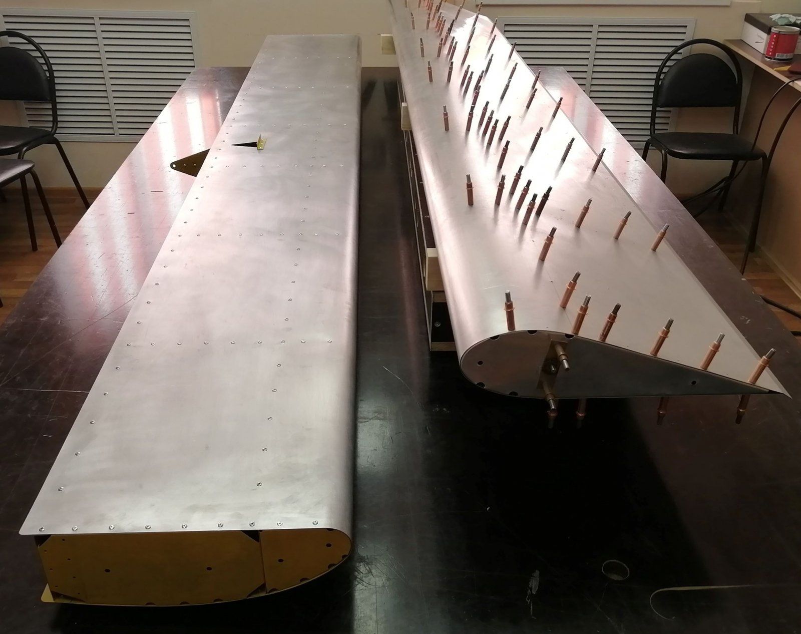 Я бы этот закрылок использовал только для добычи материала, ну, как донора. Ужасное качество, абсурдное решение - использовать трубу в качестве лонжерона при жёсткой обшивке. Может, всё-таки, нужно было попросить спроектировать самолёт (для показательных-то выступлений) инженера?