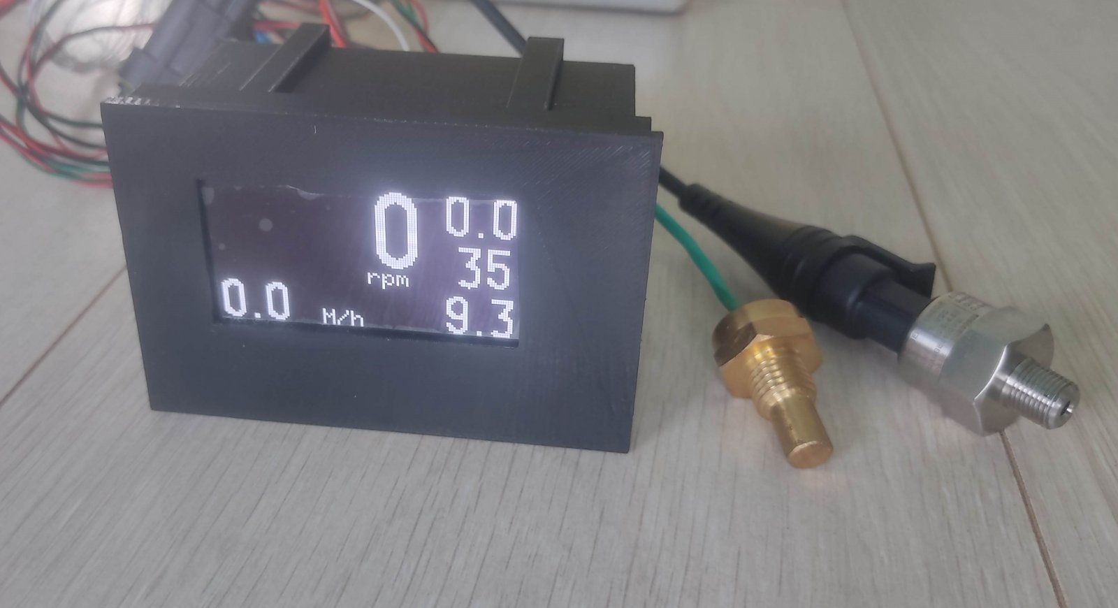 Прибор для контроля параметров двигателя. Реализованы показания давления масла, температуры ОЖ, напряжение борт сети, наработка мото часов.