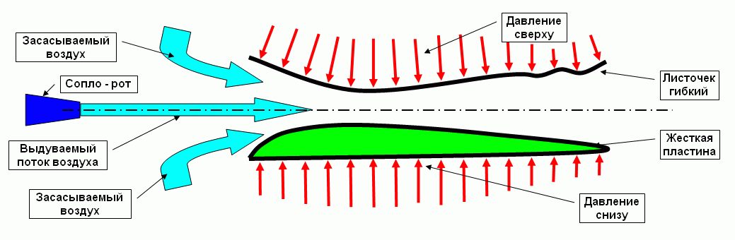 Все почитатели "разнодавленческой" теории в один голос читая учебники, написанные светилами аэродинамики скажут, что подъемная сила на том крыле возникает от того, что над верхней поверхностью крыла давление меньше чем давление под крылом. Они вычислят ту среднюю разницу по площади крыла, умножат её на ту самую площадь крыла, затем для подгонки желаемого к действительному перемножат на несколько коэффициентов - поправок и с чувством собственного достоинства "вытрут руки".