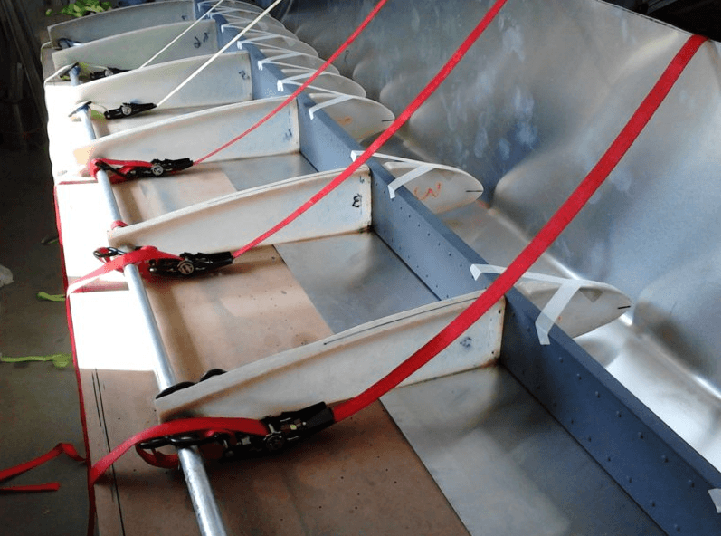 потом шпангоуты надеваете на квадратную трубу и оклеиваете 2-х слойкой стороной со стеклотканью к шпангоуту.