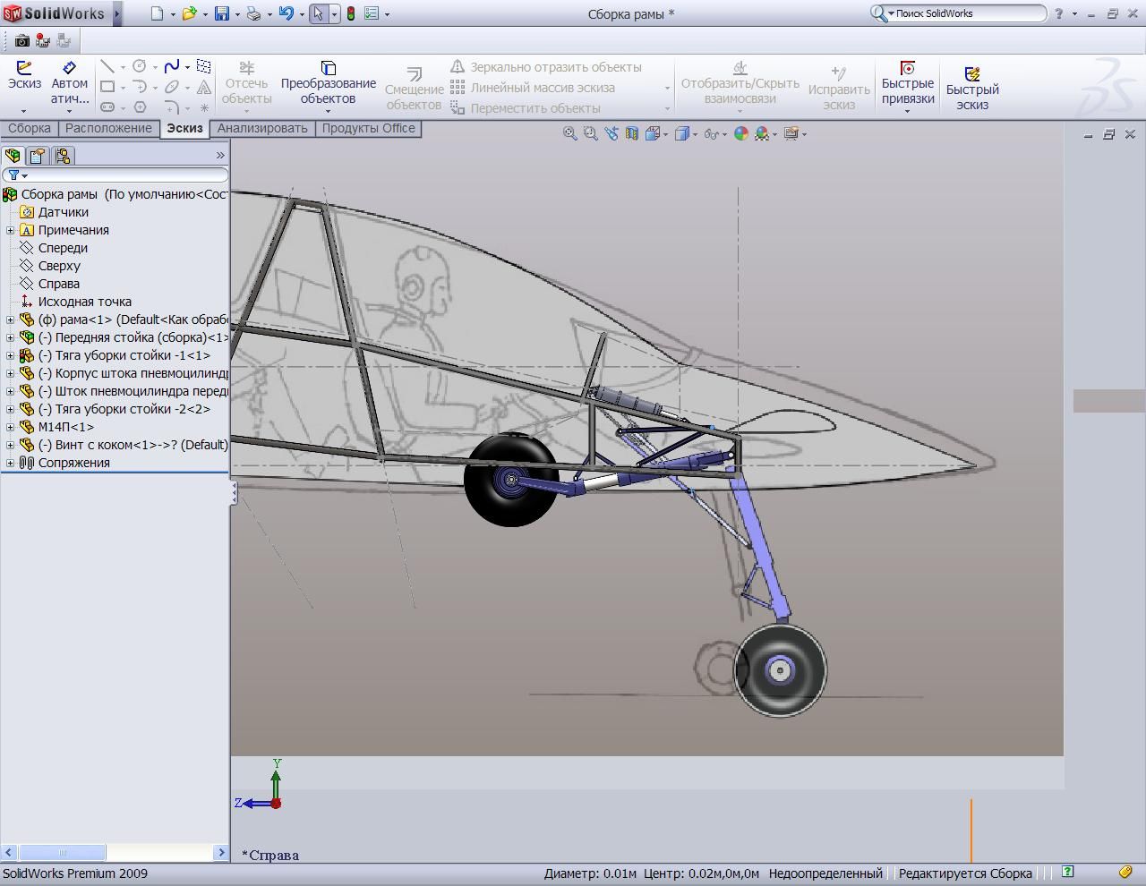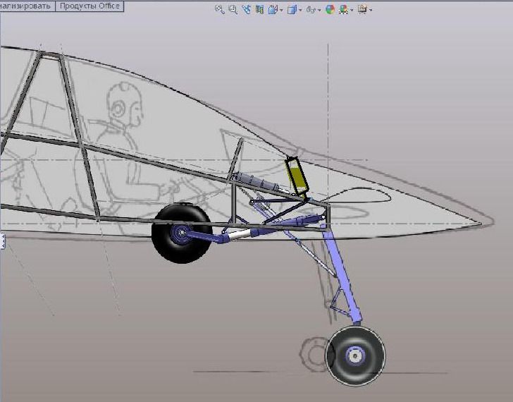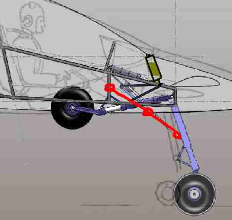 Мультик не дает представления о потребных усилиях.Там просто кинематика-вот это вокруг этого вращается.Реально чтобы чтобы привести эту схему  в действие можно и не найти цилиндра для таких усилий.Плечи и направления действия усилий совершенно не рациональны.Особенно это хорошо видно при выпущенном шасси.Вот просто сами прикинте ,куда будет тянуть цилиндр и почему он должен сложить ломающийся подкос ?