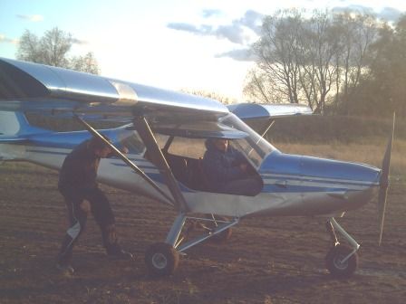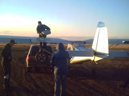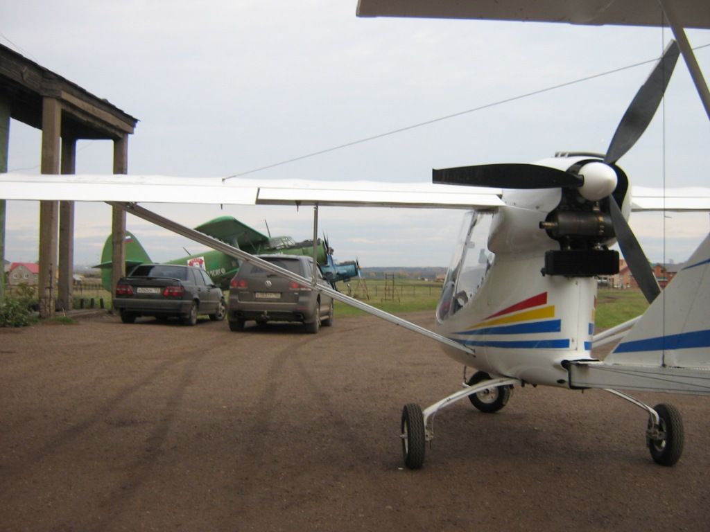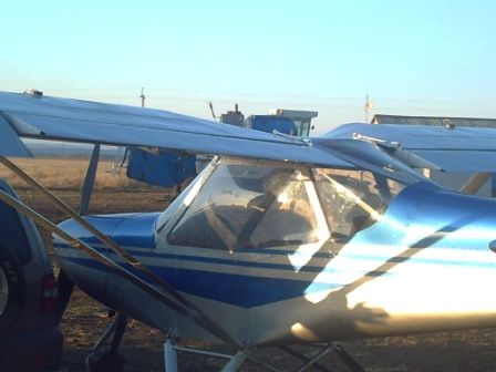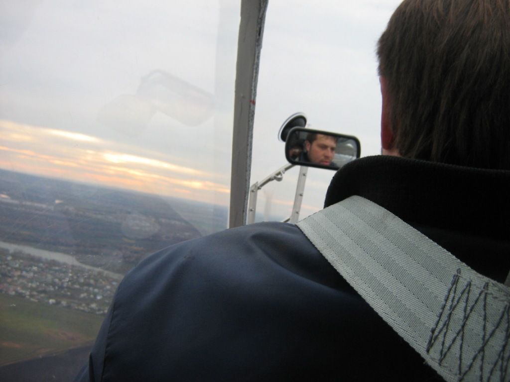 Наконец выбрались на точку старта-участок полевой дороги с непросохшей слизью... В.И.Дениско занимает место переднего пилота, а я заднего....Как ни странно , но с первого взгляда мне показалось, что кабина с тандемной посадкой пилотов будет тесной, а при моем росте 182см, еще и низкой, Но не так все оказалось на самом деле...При ширине кабины (вчистую) 70 см (немного меньше внутри за счет мягкой обшивки бортов) кабина очень просторна и высокая...Над головой еще остается большое пространство, да и по ширине достаточно, т.е при полетах в зимнее время можно смело одеваться в ватный костюм, или укутаться в тулупчик времен Емельяна Пугачева, который он подарил Гриневу в Оренбурге из "Капитанской дочки..