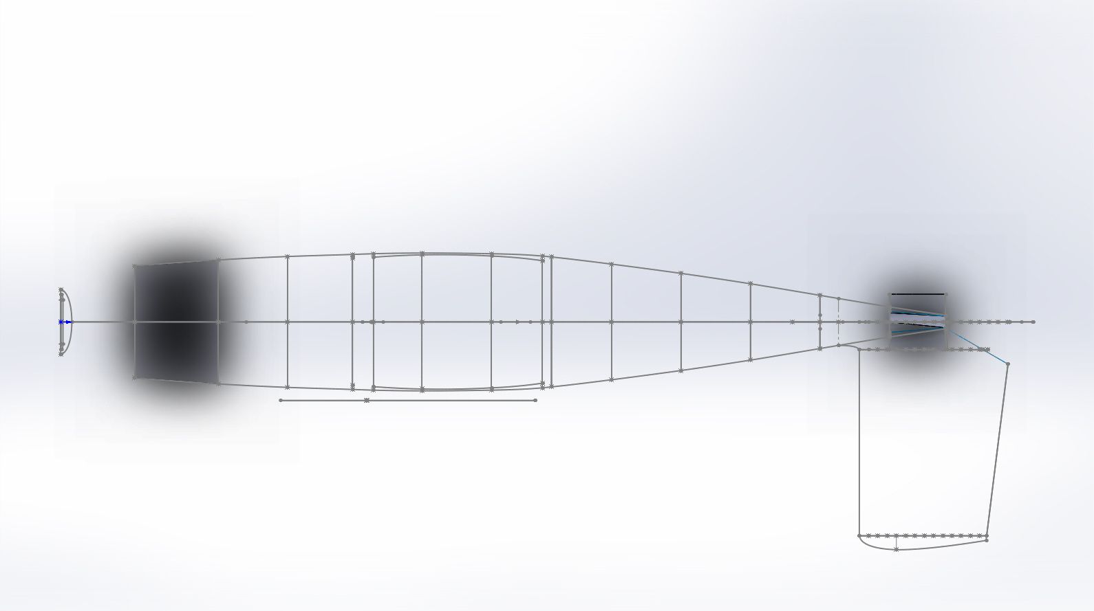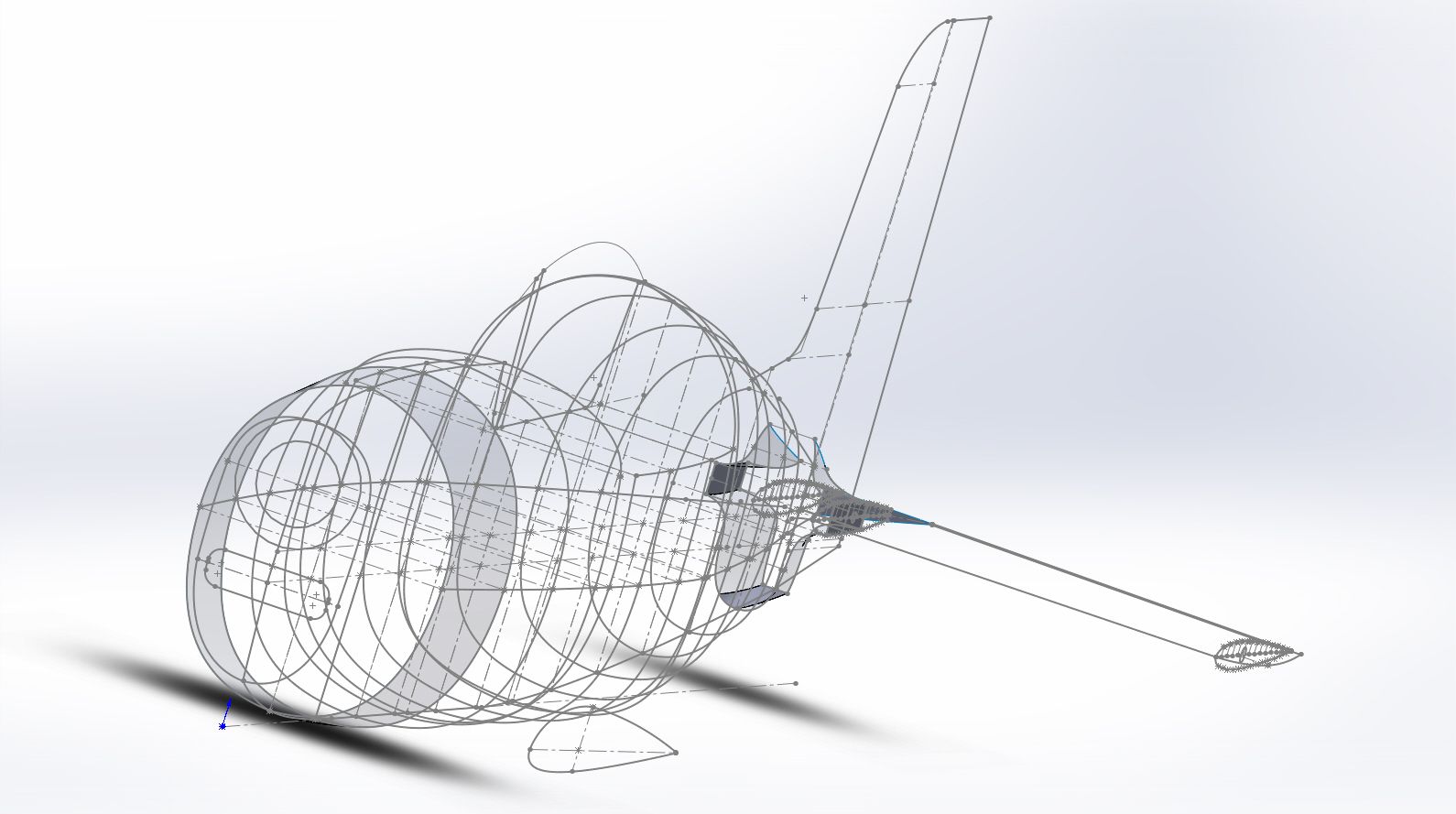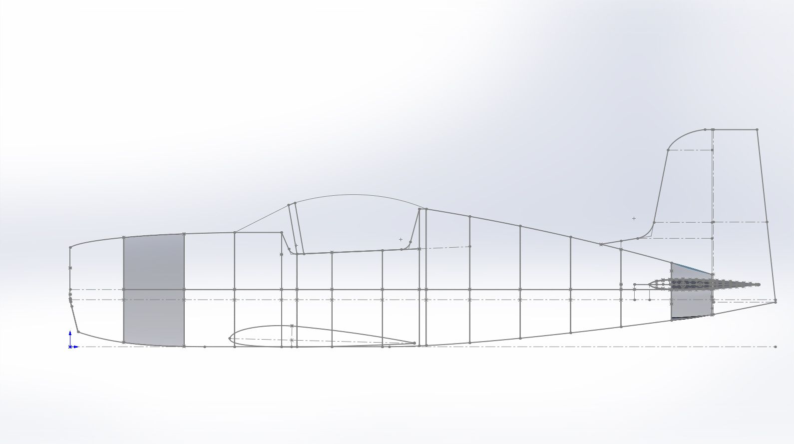 Как я писал ранее, концепция постройки фюзеляжа претерпела изменения. Первая версия фюзеляжа получилась настолько гармоничной по внешним контурам, что вторая почти не отличается от неё в профиль. Но, зато удалось значительно сузить, а значит и облегчить, профиль фюзеляжа в поперечных сечениях, так как фюзеляж будет формоваться в матрицах. Полученной геометрией я вполне доволен.