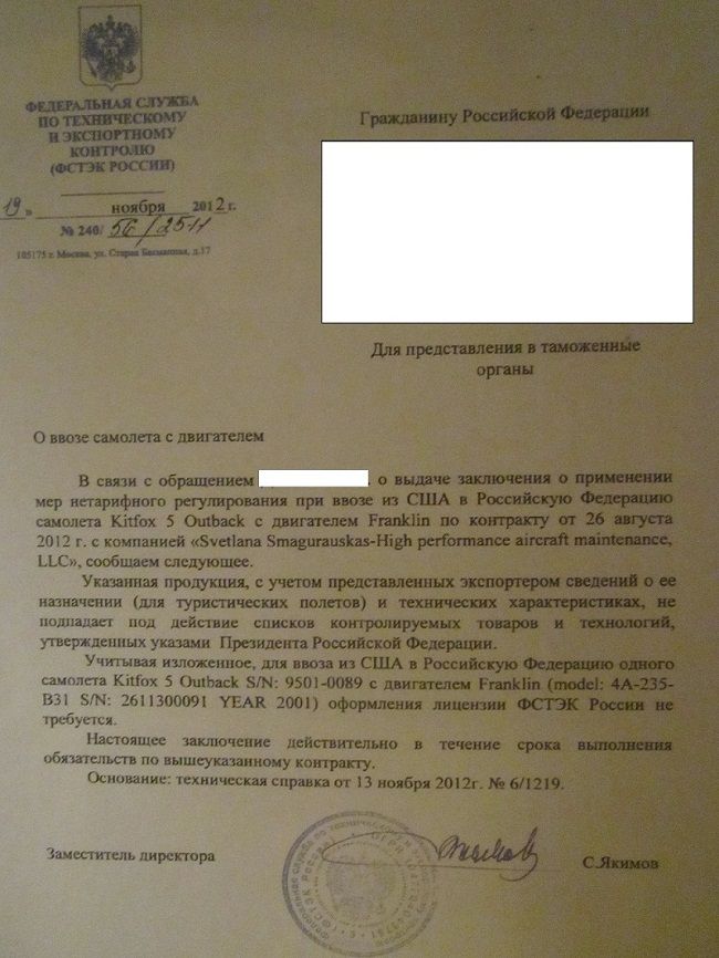 ЗАКЛЮЧЕНИЕ ФСТЭК о непринадлежности товара к объектам экспортного контроля.