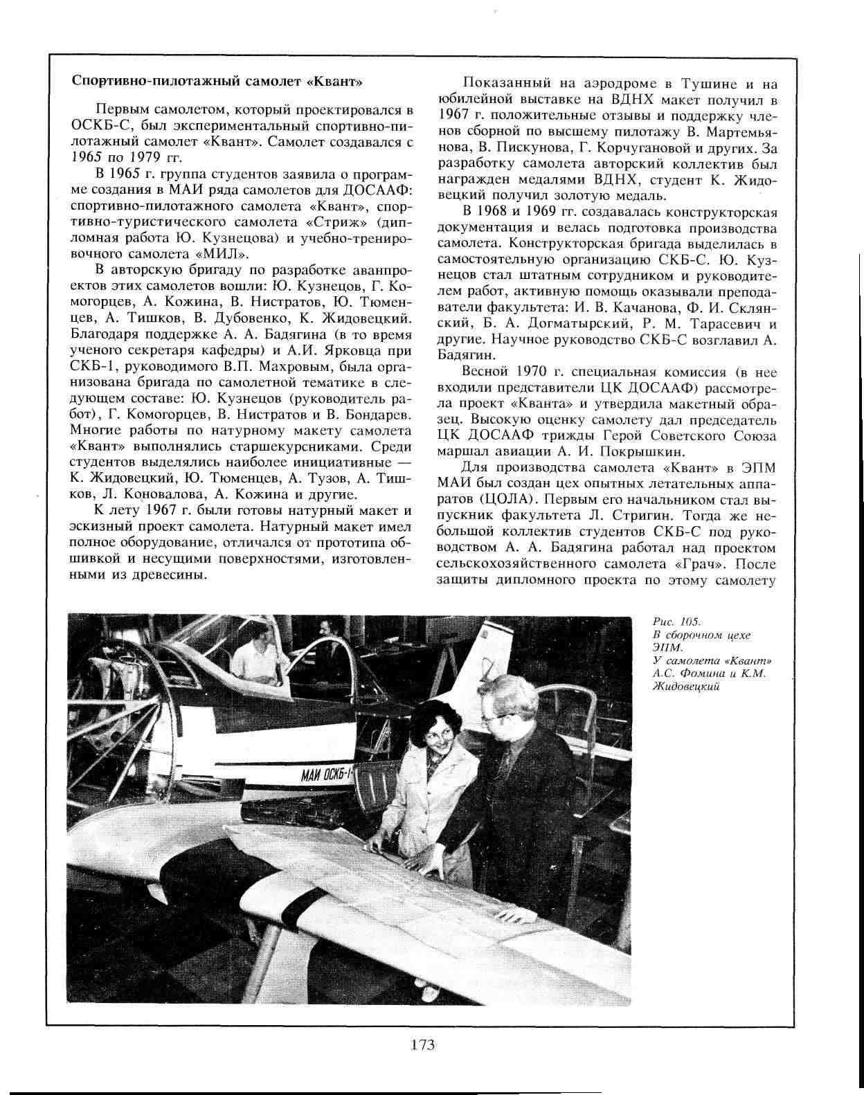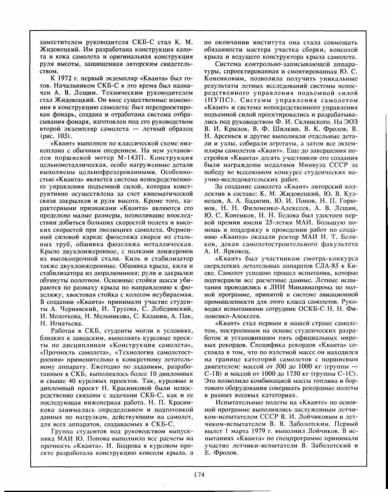 Квант был построен в качестве экспериментального образца в рамках темы о непосредственном управлении подъемной силой и цель сделать спортивный снаряд при этом не ставилось.Тем не менее,несмотря на сильное перетяжеление и совершенно не нужные для высшего пилотажа маневренные закрылки,в этом самолете был заложен ряд параметров,частично воплощенных позже в самолетах Сухого,а частично не реализованных и ныне.К сожалению осторожность Главного конструктора К.М.Жидовецкого не позволила дать самолет спортсменам Сборной на опытную эксплуатацию,что несомненно дало бы возможность развить и довести до кондиции эту концепцию.
