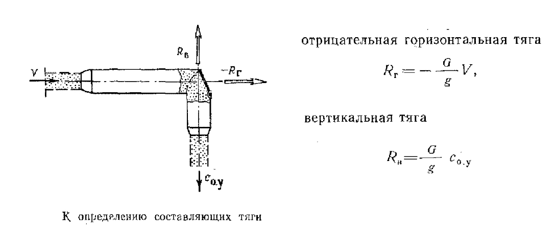 На рисунке приведена упрощенная схема реверса с углом отклонения сопла на 90 градусов (это могут быть и щитки реверсивного устройства). Угол может быть и больше 90 градусов, если исключается заброс выходящих газов на вход двигателя.
