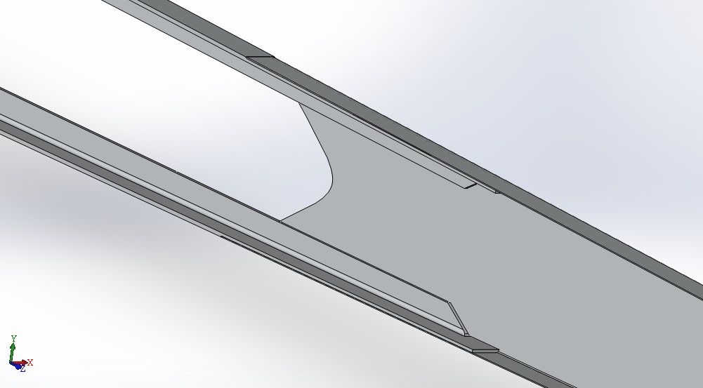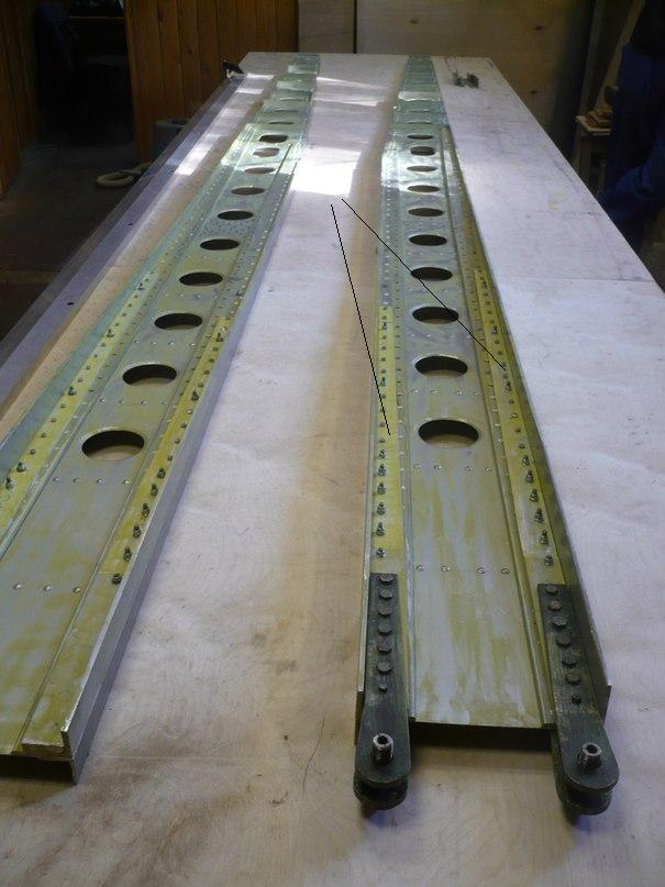 - но, внимательно рассматривая картинку выше, можно сделать практически однозначный вывод -  судя по всему, на полках лонжерона со стороны корня, сделаны внутренние подсечки и концевой элемент лонжерона, согнутый из листа, просто надет на корневую часть без ступеньки по внешнему обводу.