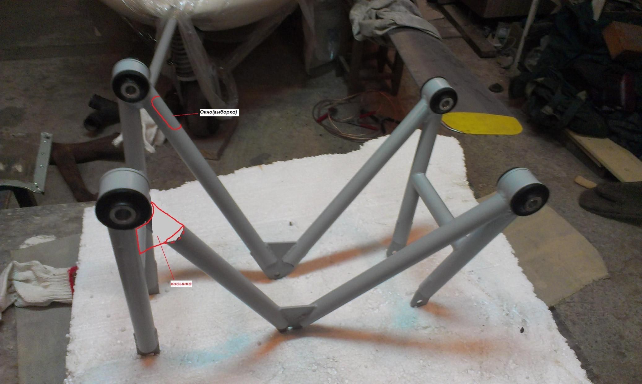 Владимир Павлович, добрый день. Направьте пожалуйста в нужное русло. Сделал мотораму, но просчитался. Повесил мотор, а он картером упирается в одну пару трубок. Я попробовал сделать окно(выборку) с последующей заваркой окна и наложением усилителя с наружной части трубы, но подгоняя, понял что окно получается слишком большим и трубка не будет работать. Самый простой выход- обрезать трубку и вварить в торец косынку как на рисунке. Возможно на косынку нужно наварить ребра жесткости. Подскажите пожалуйста возможно ли применить данную схему и по возможности дополните ее.