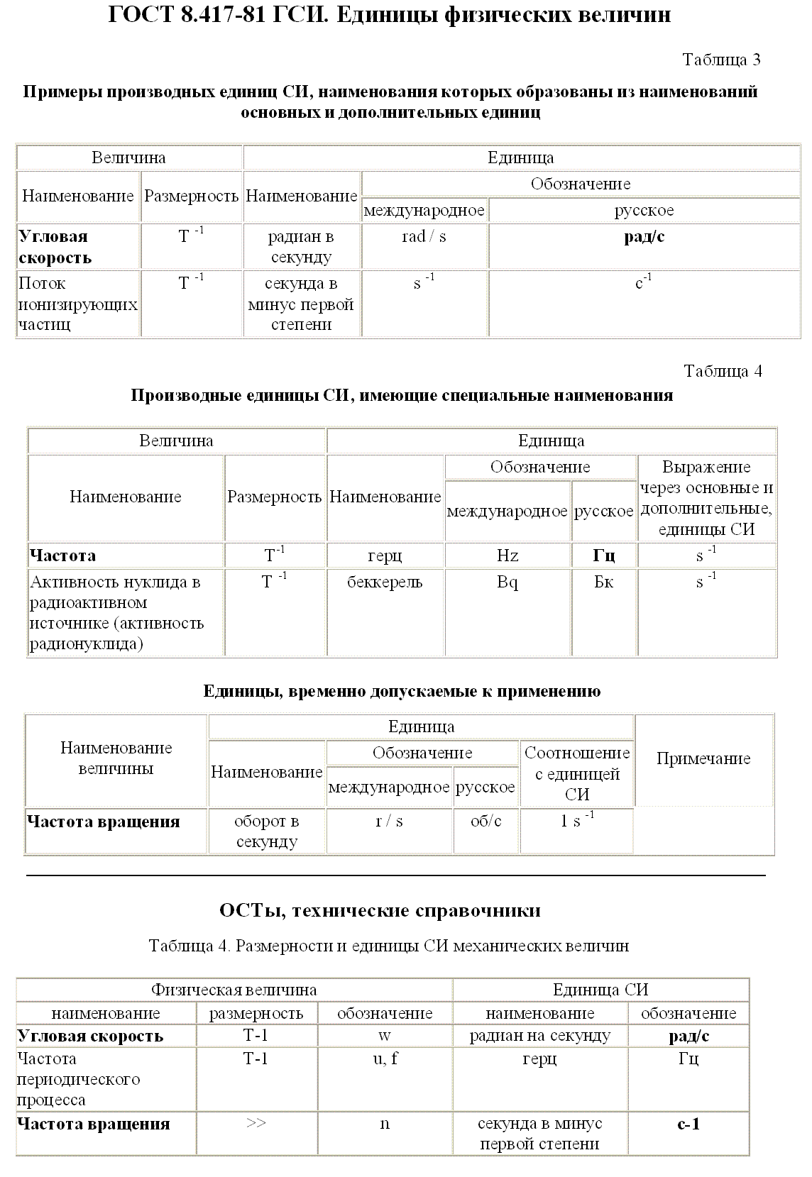 "штуки" в секунду), (периодов в секунду), или (оборотов в секунду).