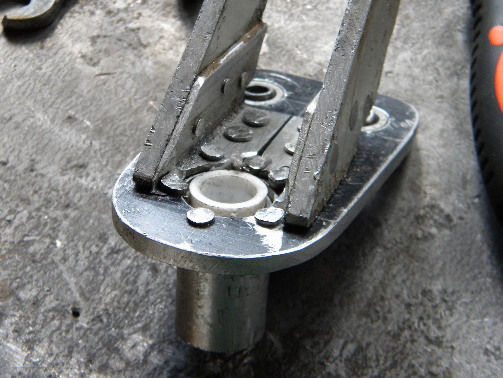 Щечки хоть с виду и толстые, но из мягкого металла и приклёпаны к тоненьким уголочкам. Похоже, что изготовитель этого девайса толком не знал каким должен получиться узел в результате. Может с материалом были проблемы Придётся включить рационализатора.