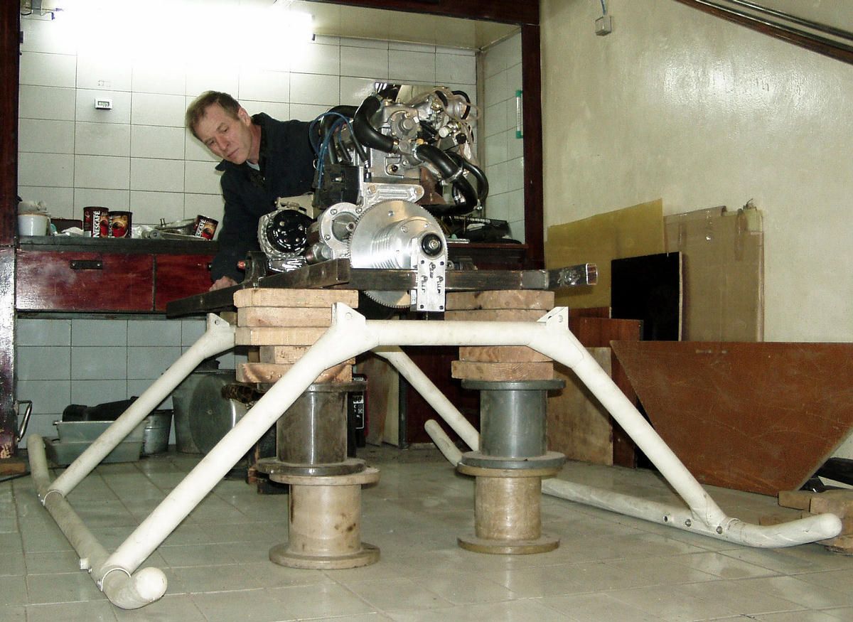 и ему не позволило оторваться от земли. На фото как раз изображён момент примерки двигателя на телегу.