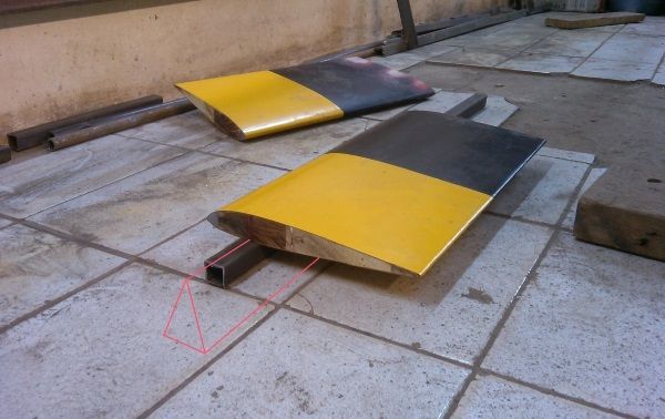 Автор положил элемент лопасти так, что центр масс оказался на самом краешке профильной трубы и не наклонился назад.