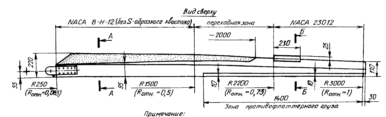 Нужной балансировки добиваются как правило лишь до середины размаха. Корневая часть лопасти имеет достаточную
