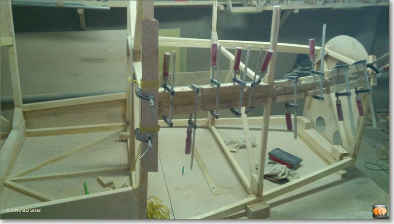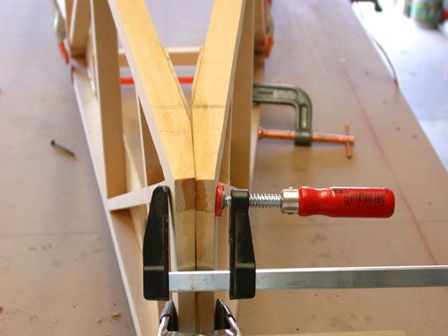 На фото видны подставки под пятым шпангоутом,третий прижат к столу.