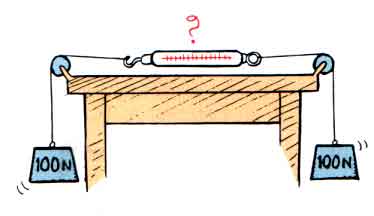 А вы не поленитесь и проведите этот простой опыт с грузами. Он-то, как раз, и даст вам возможность надавить на весы с двух сторон, а потом нам расскажете, что получилось. 😉Весы покажут столько сколько вы давите на них с одной стороны.Даваните с другой стороны, и они покажут больше.