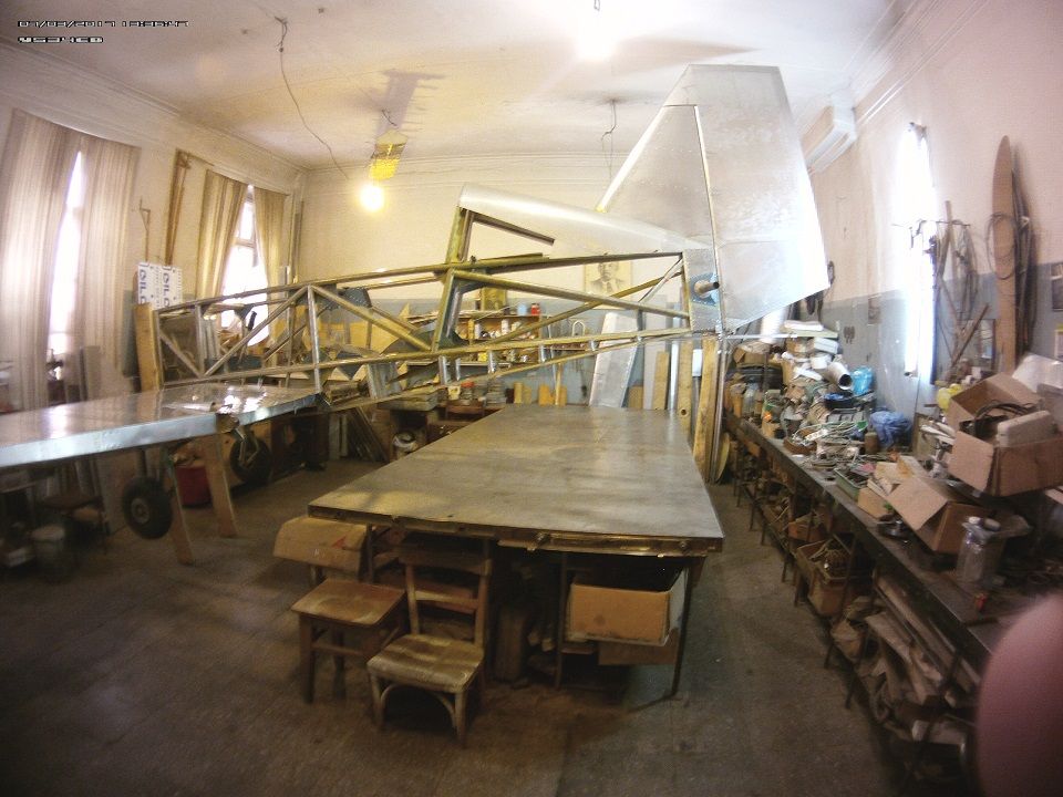 Плиты чугунные: 1400х4200 сборная из 6шт на регулируемых подставках, справа у стены – вроде 750х6000 из 4шт. Саня тридцать два года назад вылил. Две недели шлифовал самодельной приспособой из сверлилки на колесиках-подшипниках и выставлял плоскость, щуп 0,1мм под 2,5 м лекальную линейку не везде лез. 6-8 мм  в некоторых местах снимал, несколько ведер чугунной пыли намел, молодой был, еще не ленивый. Физиономия как у негра, в плите под углом отражалась, пока не затерли и не зацарапали, а некоторые на ней кувалдой правили и гнули железо. Дикий народ, однако. Трехслойки во всю плиту клеили. Потом ножом по шаблонам и линейке. Фермы, крылья собирали, болваны нервюры и прочую лабуду клеили. Полезная штука. Плиту у стены довести так и некогда. По археологическим слоям барахла на ней можно нашу историю вспоминать. Кому надо? Саню спрошу. Все равно клубу скоро пипец. Завалится, да и газпромовскому дворцу напротив вид портит. Пацанов было, 8 технических кружков. Приступ ностальгии опять…